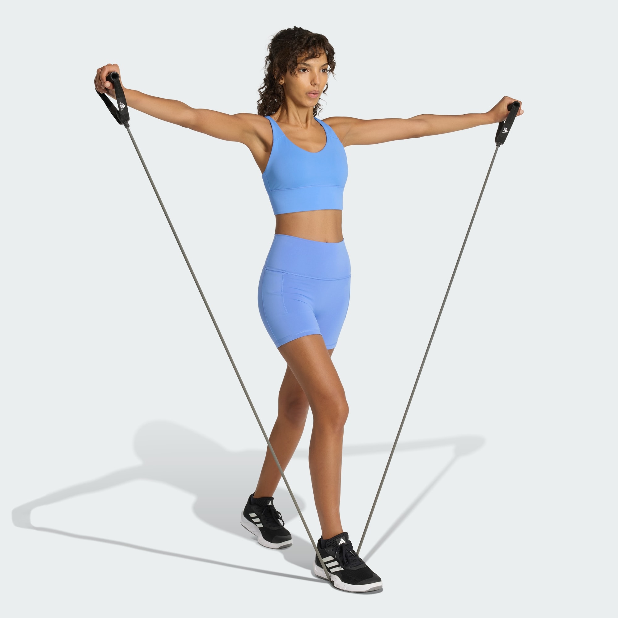 Der 3-Streifen Studio All Me Light Support BH wurde für alle entworfen, die sowohl auf Style als auch auf Funktionalität Wert legen. Egal, ob du gerade vom Yoga-Kurs kommst oder dich lässig mit Freunden triffst, dieser BH ist immer die richtige Wahl. Sein weiches und flexibles Material fühlt sich wie eine zweite Haut an und ist damit perfekt für den Alltag. Mit seinem mittleren Halt sorgt dieser BH dafür, dass du dich bei deinen Workouts wohlfühlst und selbstbewusst bist. Das Rückendesign mit schmalen Trägern sorgt für einen Hauch von Flair, während der V-Ausschnitt das Modell schick und modern macht. Die herausnehmbaren Polster mit Grip-Punkten verhindern unerwünschtes Verrutschen, sodass du dich ganz auf deine Leistung konzentrieren kannst. Dieser BH aus einer Mischung aus Polyester und Elasthan bietet eine eng anliegend geschnittene Passform, die sich deinen Bewegungen anpasst. Das adidas 3-Streifen-Logo sorgt für einen Signature-Touch und macht ihn zu einem Must-have für deine Activewear-Kollektion. Genieße das gute Gefühl mit dem 3-Streifen Studio All Me Light Support BH und peppe deine Workout-Garderobe auf.
