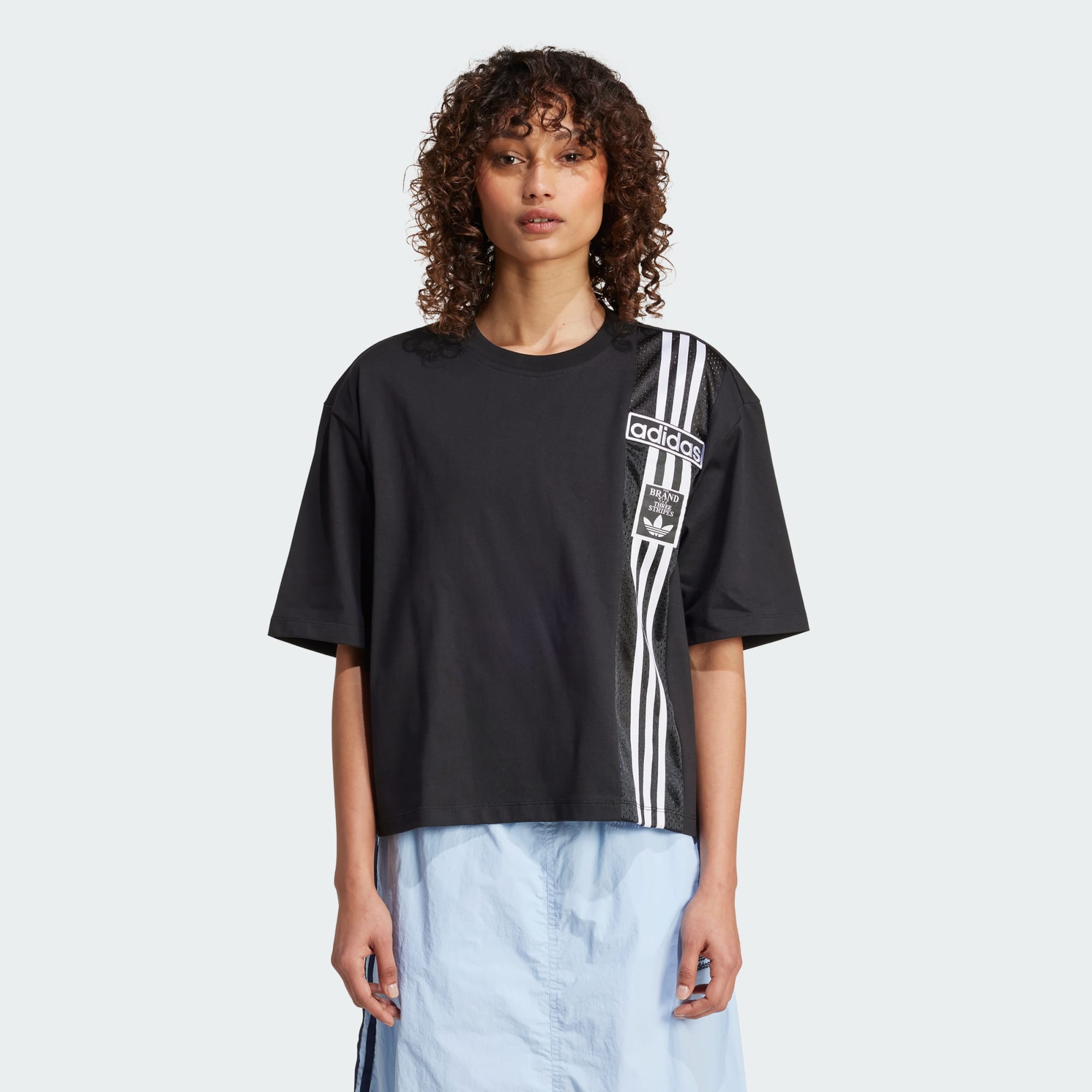Ein lockeres Crop-Shirt mit auffälligen adidas Grafiken.