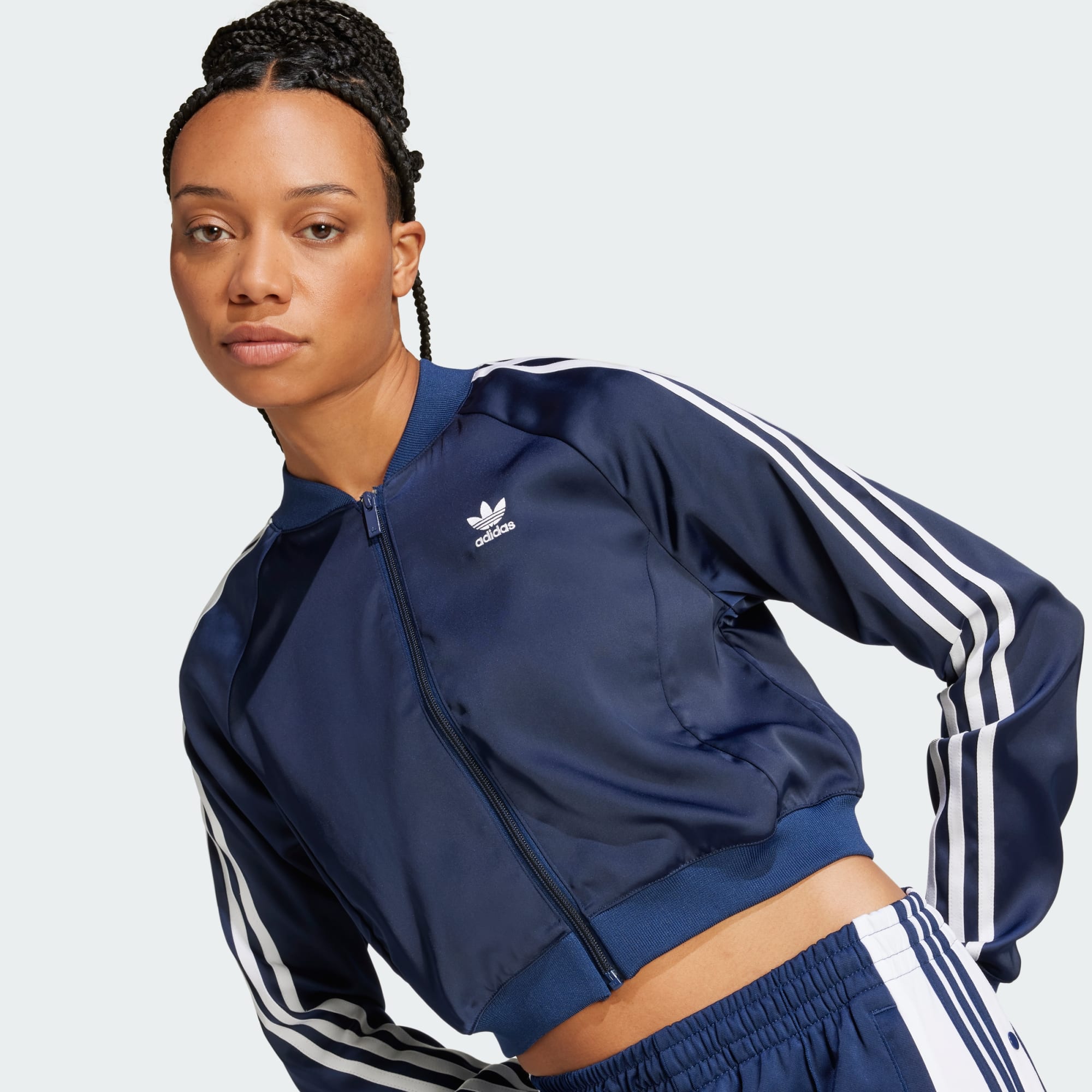 Seit Jahrzehnten stehen adidas Track Top für Sportswear in ihrer reinsten Form. Dieses Track Top aus seidigem Satin setzt die Erfolgsgeschichte fort und kommt mit den typischen 3-Streifen. Kombiniert mit Jeans oder einem Rock wird ein lässiger Look draus. Dieses Produkt ist mit mindestens 70 % recycelten Materialien hergestellt. Die Wiederverwendung bereits vorhandener Materialien hilft uns dabei, Müll zu reduzieren, unsere Abhängigkeit von nicht erneuerbaren Ressourcen einzuschränken und den CO2-Fußabdruck unserer Produkte zu verringern.