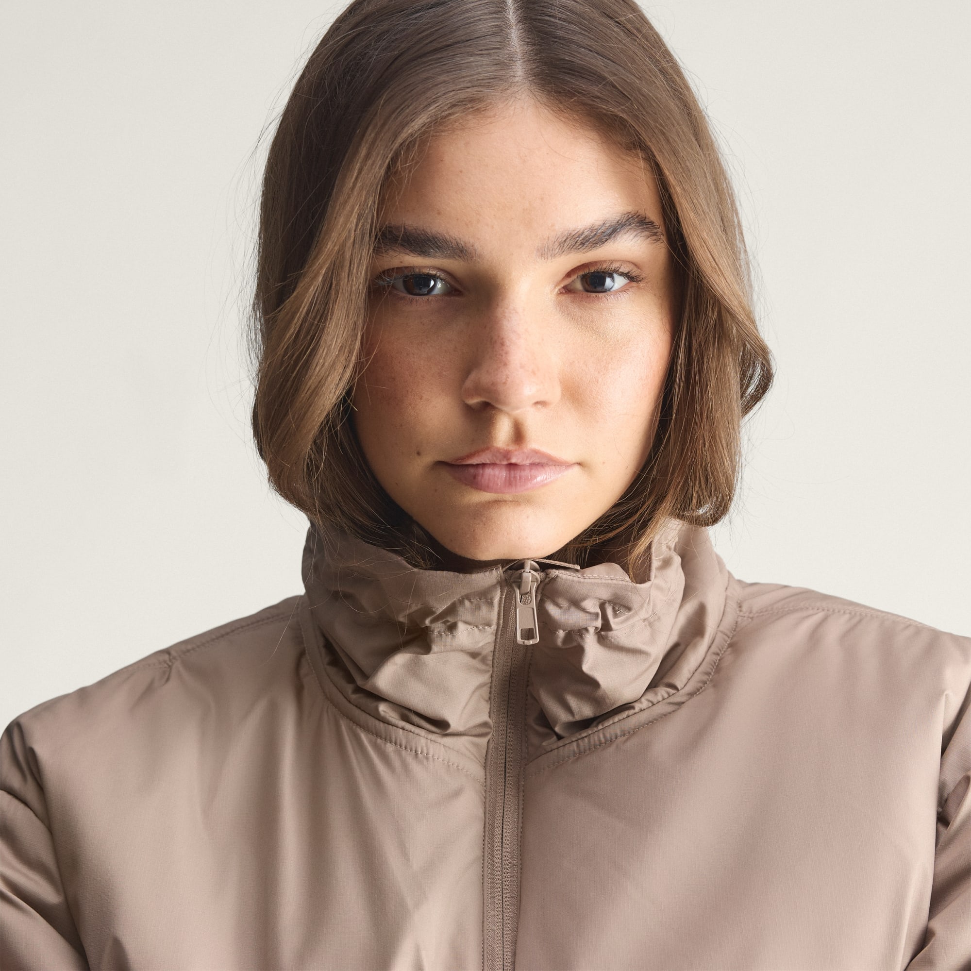 - Durchgehender Reißverschluss, hoher Kragen