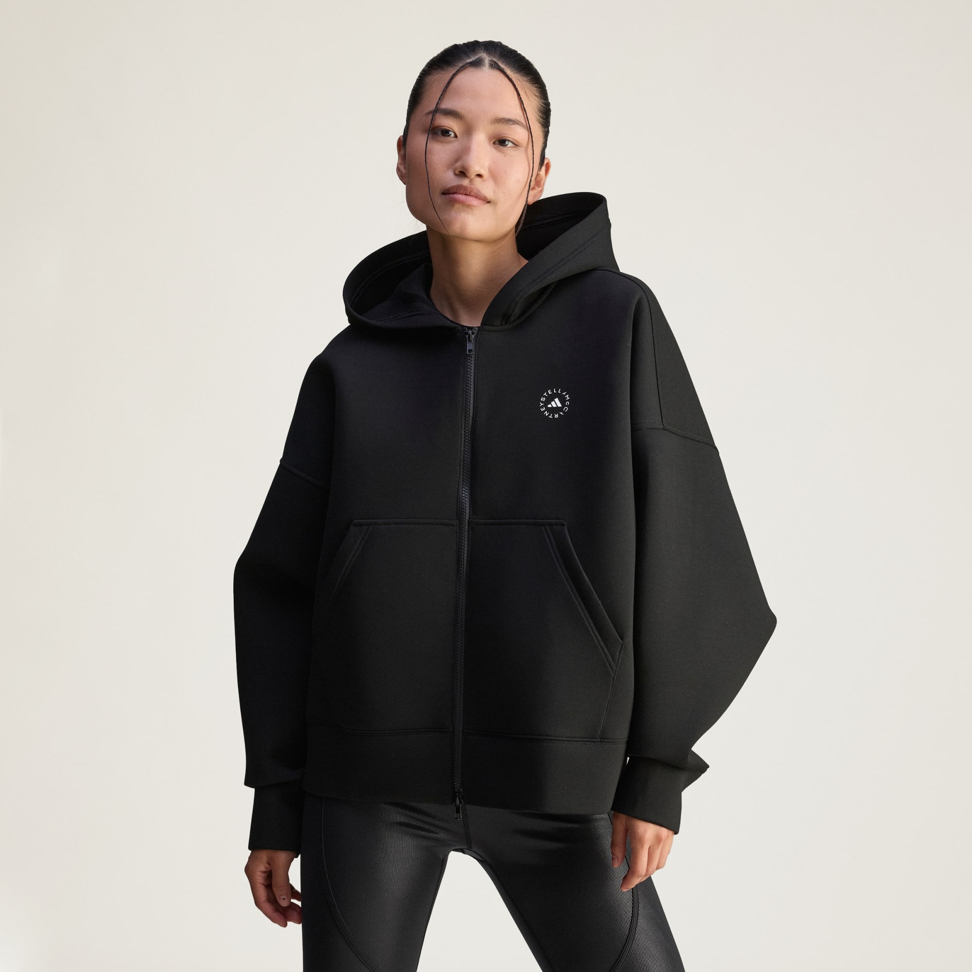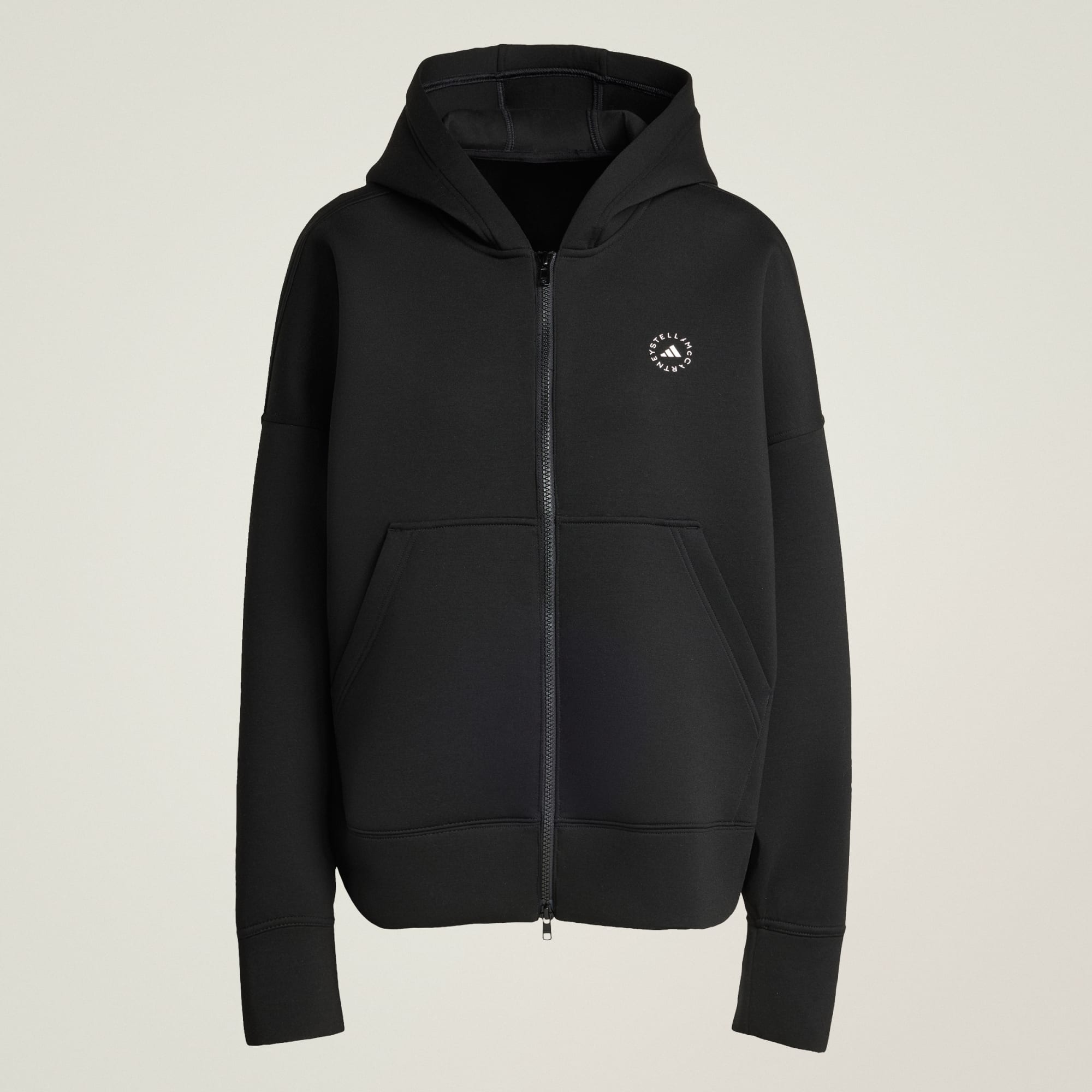 Das kuschelige Scuba Material dieser Kapuzenjacke von adidas by Stella McCartney umhüllt dich bei jedem Tragen mit luxuriöser Weichheit, während die lockere Passform für uneingeschränkte Bewegungsfreiheit an aktiven Tagen sorgt. Dezente Designdetails wie der hochauflösende Stella Logo-Print sorgen für einen edlen Touch. Schlüpfe in diese adidas by Stella McCartney Kapuzenjacke für deinen morgendlichen Yoga-Flow oder wenn du am Wochenende Besorgungen machst.