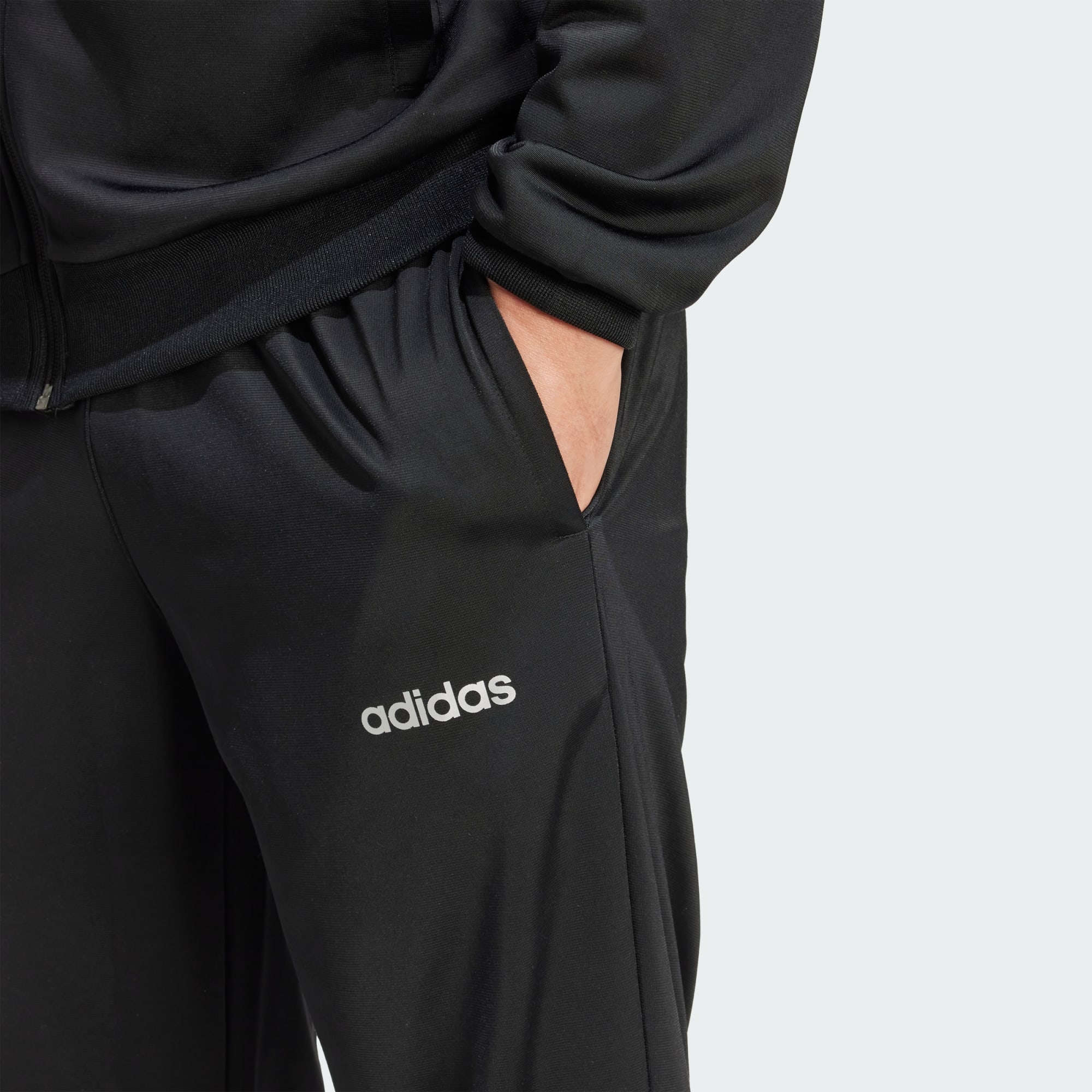 Bei diesem adidas Trainingsanzug dreht sich alles um lässigen Style. Schlüpfe in den weichen und geschmeidigen Trikotstoff und schon bist du zu allem bereit. Der hohe Kragen bietet zusätzlichen Tragekomfort und der per Kordelzug verstellbare elastische Bund sorgt für den perfekten Sitz. In den Taschen an Jacke und Hose kannst du deinen Ausweis und deine Schlüssel verstauen.
