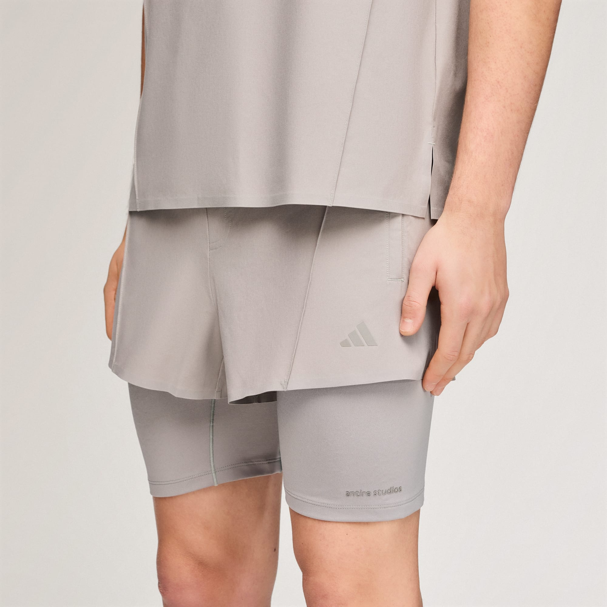Entdecke mit den adidas x entire studios D4T Training 2in1 Shorts die Zukunft des Trainings. Diese Shorts sind für diejenigen entwickelt, die sowohl Style als auch Leistung erwarten. Das cleane Design besteht aus Shorts mit integrierter Innenhose und bietet eine reguläre Passform, die mühelos jede Bewegung mit dir mitmacht. In den zwei Reißverschlusstaschen hast du deine wichtigsten Utensilien immer griffbereit. Die innenliegenden Kordelzüge und ein Gummizug am Rücken sorgen für sicheren Halt. Ein gebondeter Saum und ein elastisches Innenband am Bund tragen ebenfalls zum Tragekomfort bei, während das schlichte, reflektierende Branding einen stylishen Akzent setzt. Kühl. Trocken. Bereit. Die Climacool Technologie leitet Feuchtigkeit von der Haut ab und sorgt für ein kühles und trockenes Tragegefühl – keine Ablenkung, nur Performance. Die schnell trocknenden Fasern sorgen für ein frisches Gefühl auf der Haut, selbst bei intensiven Trainingseinheiten. Ob im Fitnessstudio oder in der Stadt, diese Shorts bieten ein ausgewogenes Verhältnis zwischen Leistung und Komfort. Verbessere dein Training mit adidas und erlebe eine Kombination aus Innovation und Style.