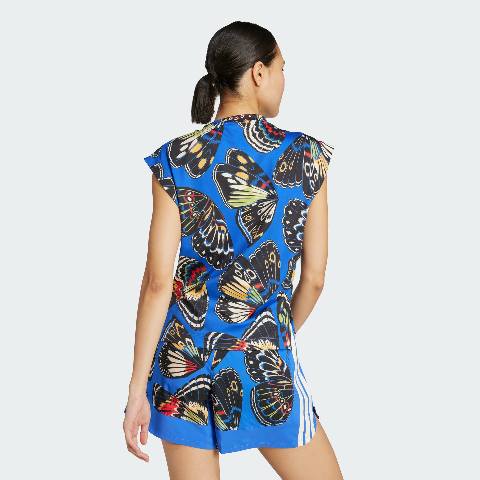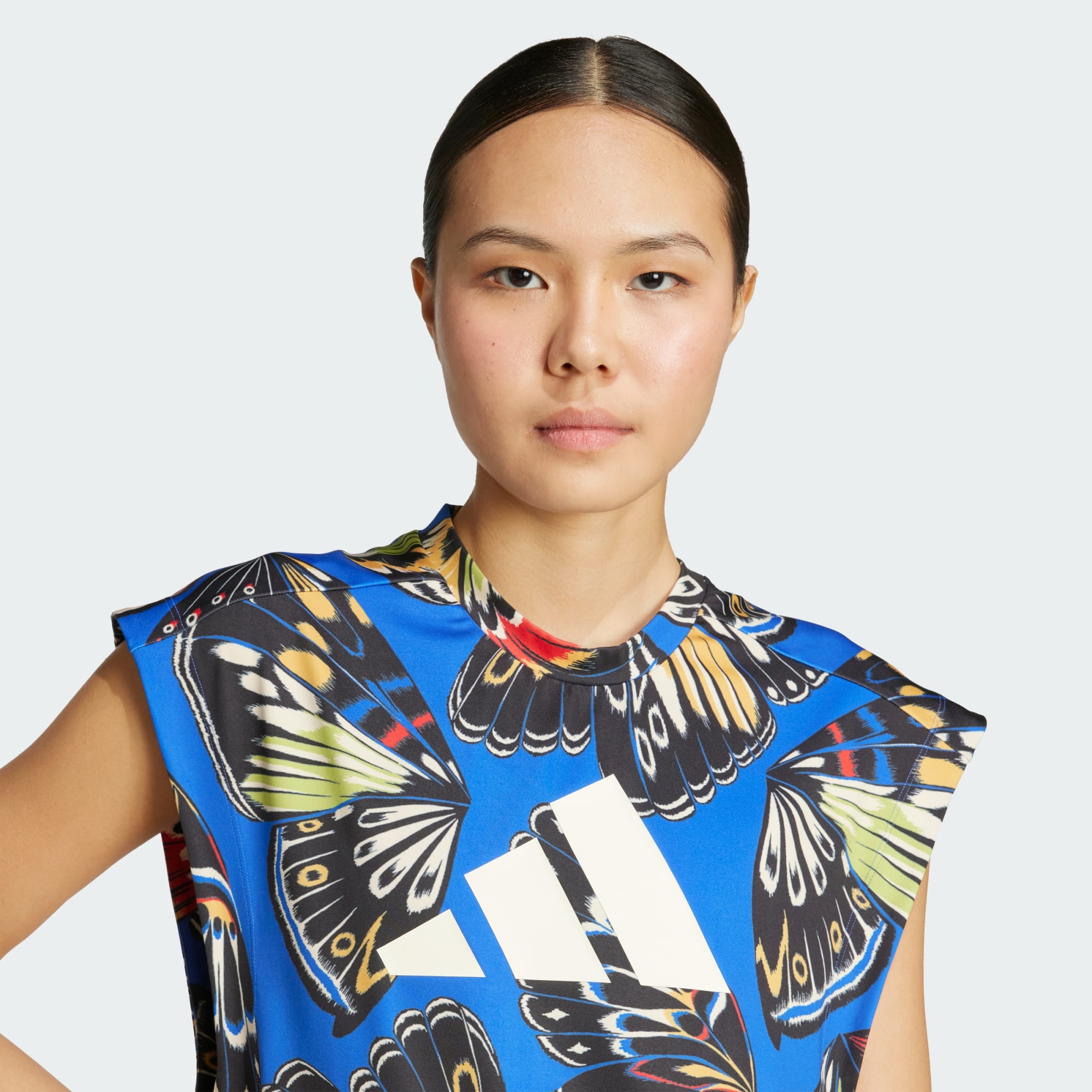 Mit diesem adidas x FARM Trainingstop breitest du deine Flügel aus. Mit seinem auffälligen Schmetterlingsprint lässt es dich mit Anmut und Selbstvertrauen durch dein Workout schweben. Die AEROREADY Technologie leitet Feuchtigkeit ab, damit du dich auch bei hochintensivem Training frisch fühlst.