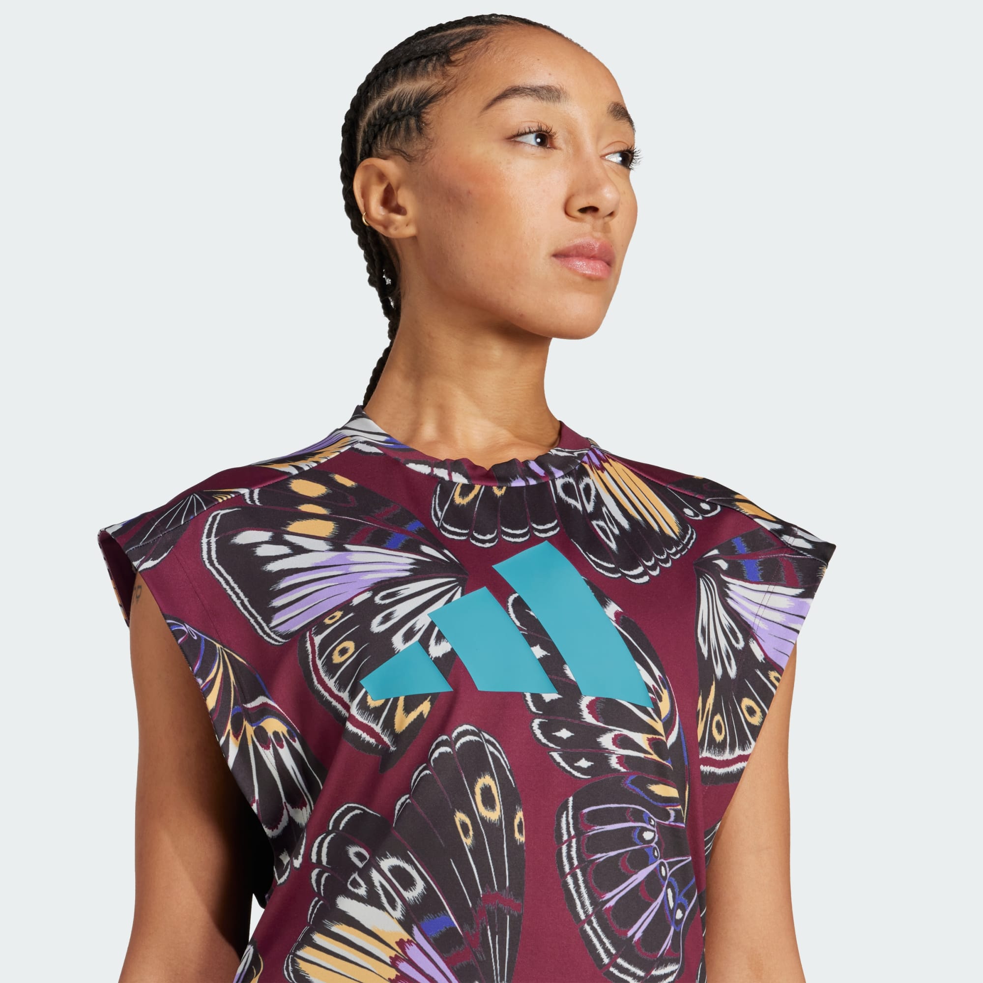 Mit diesem adidas x FARM Trainingstop breitest du deine Flügel aus. Mit seinem auffälligen Schmetterlingsprint lässt es dich mit Anmut und Selbstvertrauen durch dein Workout schweben. Die AEROREADY Technologie leitet Feuchtigkeit ab, damit du dich auch bei hochintensivem Training frisch fühlst.