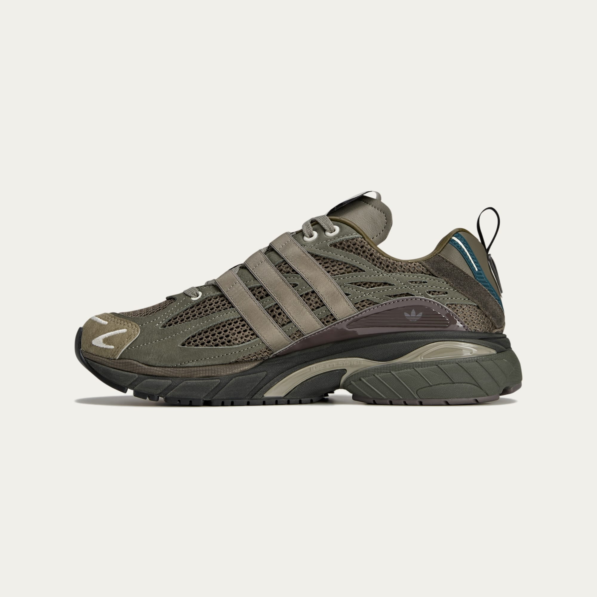 Hier trifft einer der gefeiertsten adidas Sneaker der frühen 2000er auf den Signature-Style von Song for the Mute. Wie der Name des Adistar Cushion schon verrät, wartet dieser Sneaker mit einer unschlagbaren Dämpfung und hohem Tragekomfort auf. Er hat ein flexibles Obermaterial, ein ungefüttertes Underlay aus offenporigem Mesh und einen Cage aus Nubuk mit Nahtdetails in der Mitte. Die Zehenkappe aus Ponyfell und die Zwischensohle in Used Optik setzen die Designsprache mit passenden Materialien und Strukturen fort.