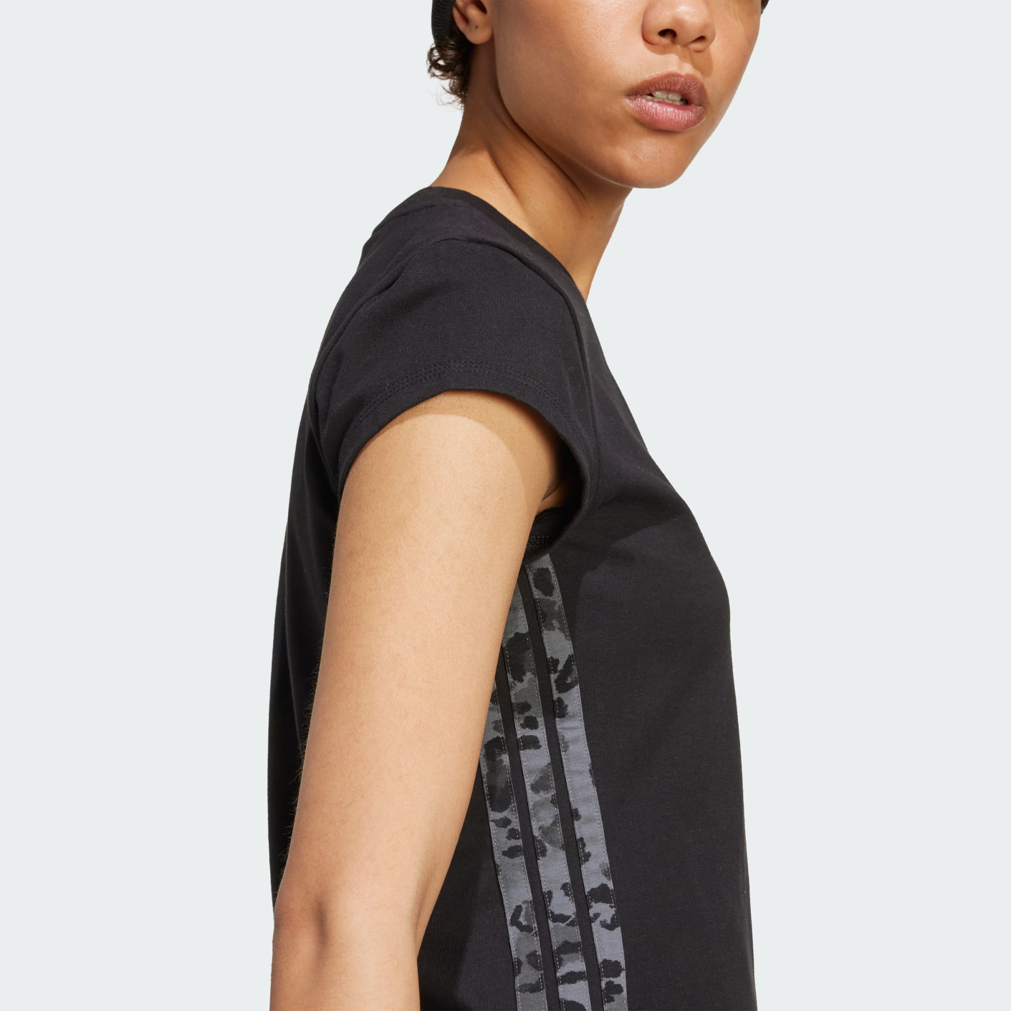 Dieses adidas T-Shirt verleiht einer klassischen Silhouette einen verspielten Touch. Details mit Leopardenprint sorgen für einen Hauch von Attitude. Das Top ist aus weichem Baumwolljersey mit etwas Stretch gefertigt und hat eine bequeme Passform, die sich leicht layern lässt. Ein aufgesticktes adidas Badge of Sport Logo auf der Rückseite rundet den Look ab.