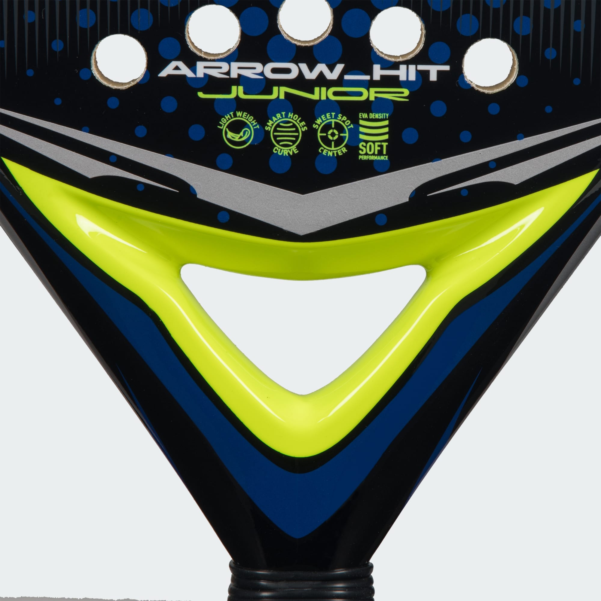Der Arrow_Hit Schläger wurde von adidas mit Blick auf die Bedürfnisse junger Spielerinnen und Spieler entwickelt und bietet ein leichtes und reaktionsfreudiges Tragegefühl, das ihnen hilft, ihre Fähigkeiten mit Selbstvertrauen auszubauen. Das Gewicht ist zur verbesserten Kontrolle in Richtung Griff verlagert. Das weiche EVA-Gummi und die Glasfaserkonstruktion sorgen für Komfort und ein geschmeidiges, reaktionsfreudiges Spiel, um die Grundlagen zu meistern. Dieser ausbalancierte, agile und leistungsorientierte Schläger verkörpert den Spirit von adidas und gibt jungen Spielerinnen und Spielern die notwendigen Werkzeuge an die Hand, um ihr Spiel zu entdecken, ihre Technik zu verbessern und Spaß am Sport zu haben.