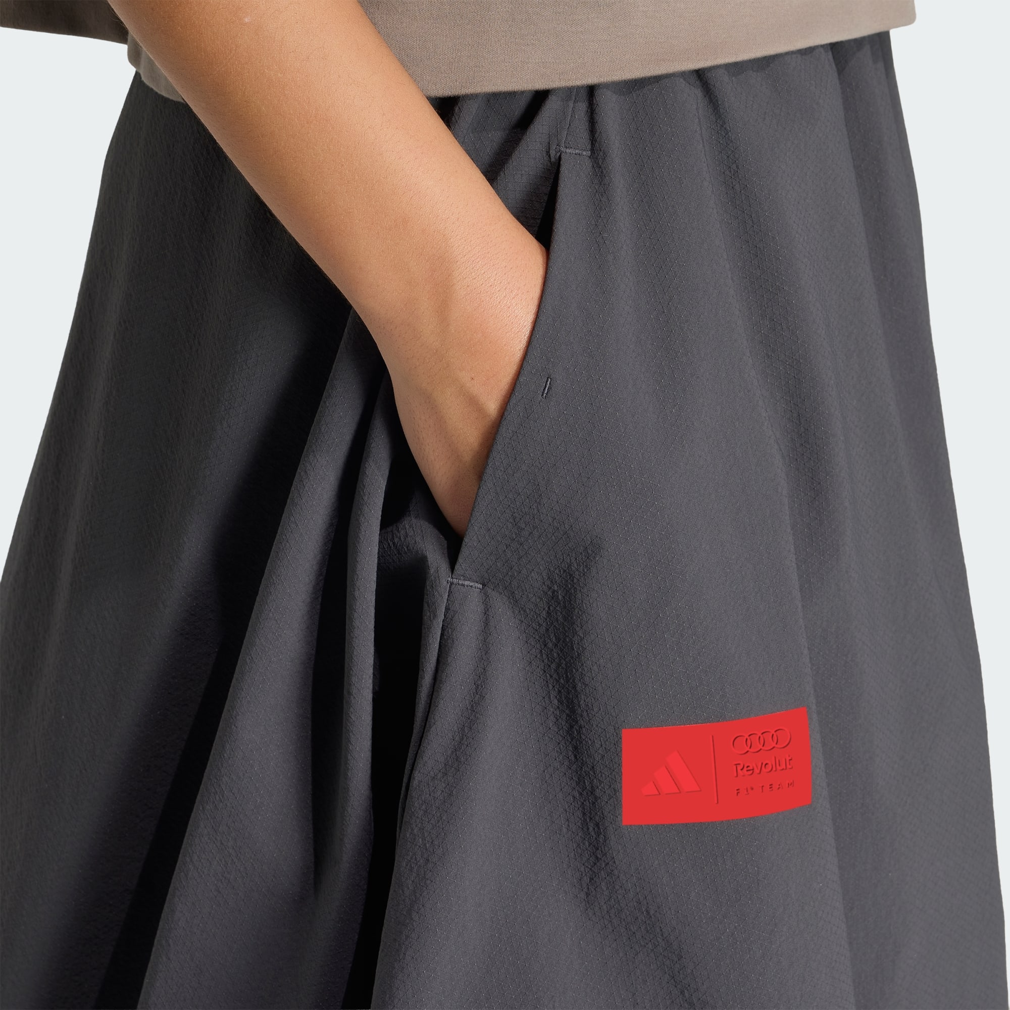 Der gewebte Audi Revolut F1® Team Elevated Rock ist von der Dynamik des Audi Revolut F1® Teams inspiriert und zeigt deine Leidenschaft für den Motorsport. Er ist aus robustem Ripstop gefertigt und sorgt für einen modernen, sportlichen Look mit dezentem Glanz. Das Mesh-Futter und die Taschen verleihen ihm einen funktionalen Touch. Dank vollständig elastischem Bund sitzt der Rock bequem und sicher. Das ikonische Branding verleiht diesem modernen Style ein unverwechselbares, leistungsorientiertes Finish, das Flair und Funktionalität mit einem selbstbewussten Rennsportstil verbindet.