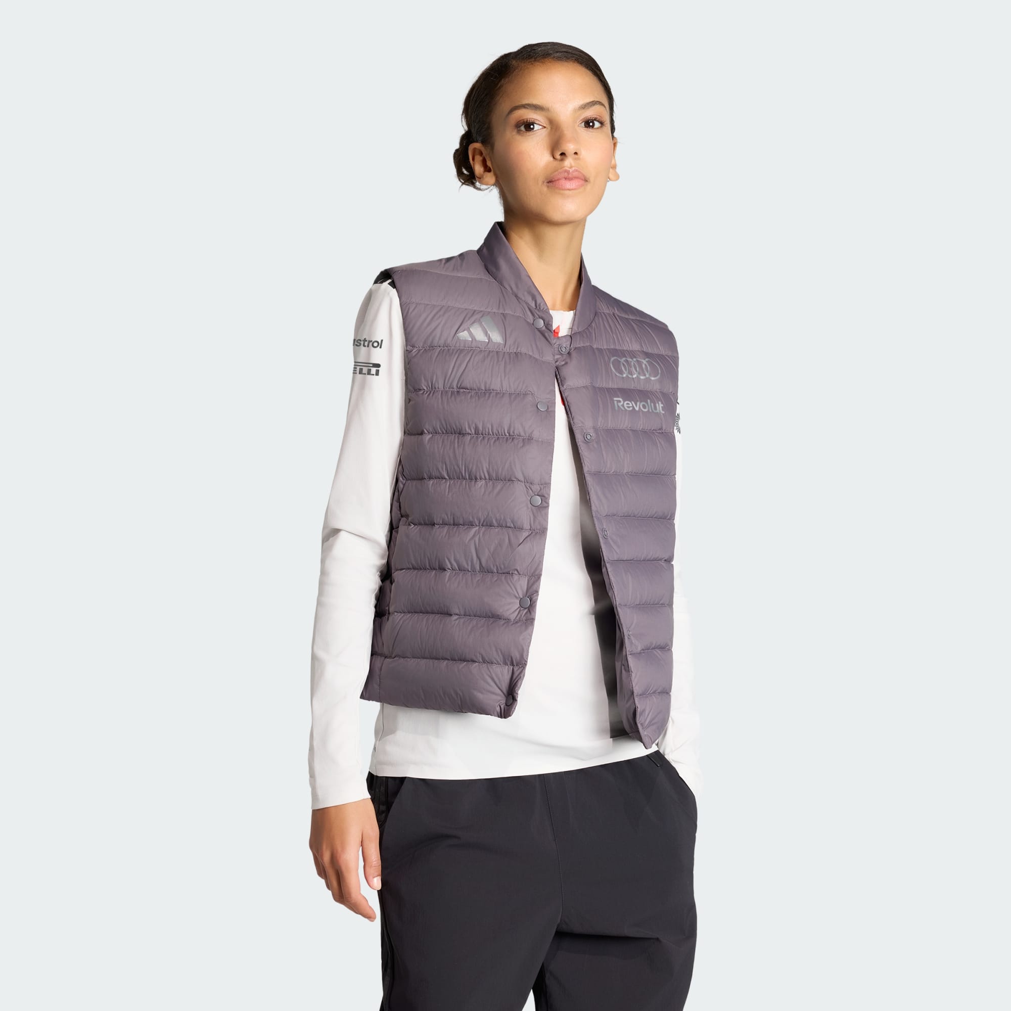 Wir präsentieren die Audi Revolut F1® Teams Engineers & Marketing Steppweste, die Präzision und Leistung verkörpert. Warm. Trocken. Konzentriert. Climawarm speichert die Wärme für eine warme, trockene und konzentrierte Leistung. Das strapazierfähige, wasserabweisende Finish sorgt für ein trockenes Tragegefühl, während sich die regulär geschnittene Passform easy layern lässt. Die einfache gewebte Konstruktion steht nicht nur für hohe Strapazierfähigkeit, sondern auch einen sleeken Look. Reißverschlusstaschen auf der Vorderseite bieten sicheren Stauraum. Und weil sie sich leicht verpacken lässt, kannst du die Jacke überallhin mitnehmen. Mit ihrem zeitlosen Design und der leichten Daunenfüllung verspricht diese Weste Komfort, ohne dabei Kompromisse beim Stil einzugehen. Mit einer Anspielung auf die ikonischen Brandings des Audi Revolut F1® Teams und von adidas ist sie eine vielseitige Ergänzung für deine Garderobe.