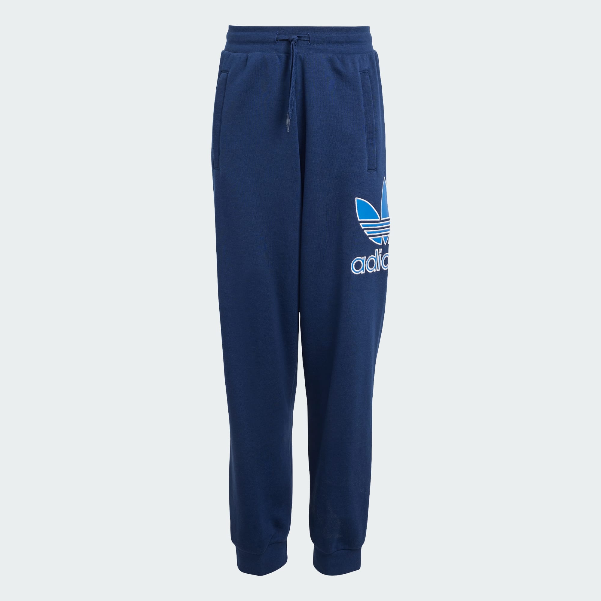 Bei dieser adidas Jogginghose für Kinder und Teens dreht sich alles um auffälligen Style und lässigen Komfort. Während die lockere Passform und das weiche Baumwollmaterial für ein gemütliches Tragegefühl sorgen, macht das große Trefoil Logo am Bein den 90s-Vibe perfekt. Kombiniert mit einem T-Shirt mit Grafikprint und deinen Lieblingssneakern wird ein angesagter Look draus.