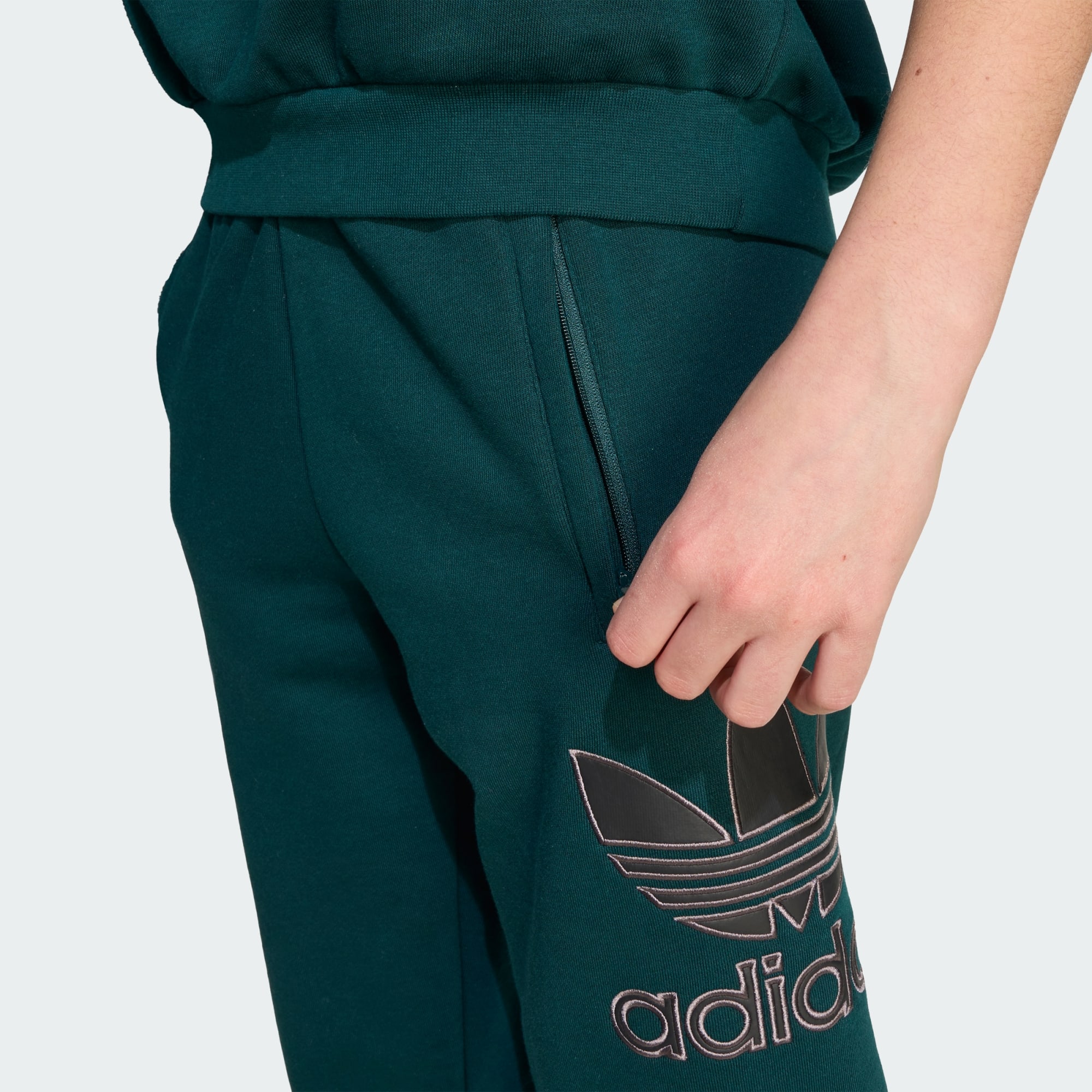 Bei dieser adidas Jogginghose für Kinder und Teens dreht sich alles um auffälligen Style und lässigen Komfort. Während die lockere Passform und das weiche Baumwollmaterial für ein gemütliches Tragegefühl sorgen, macht das große Trefoil Logo am Bein den 90s-Vibe perfekt. Kombiniert mit einem T-Shirt mit Grafikprint und deinen Lieblingssneakern wird ein angesagter Look draus.