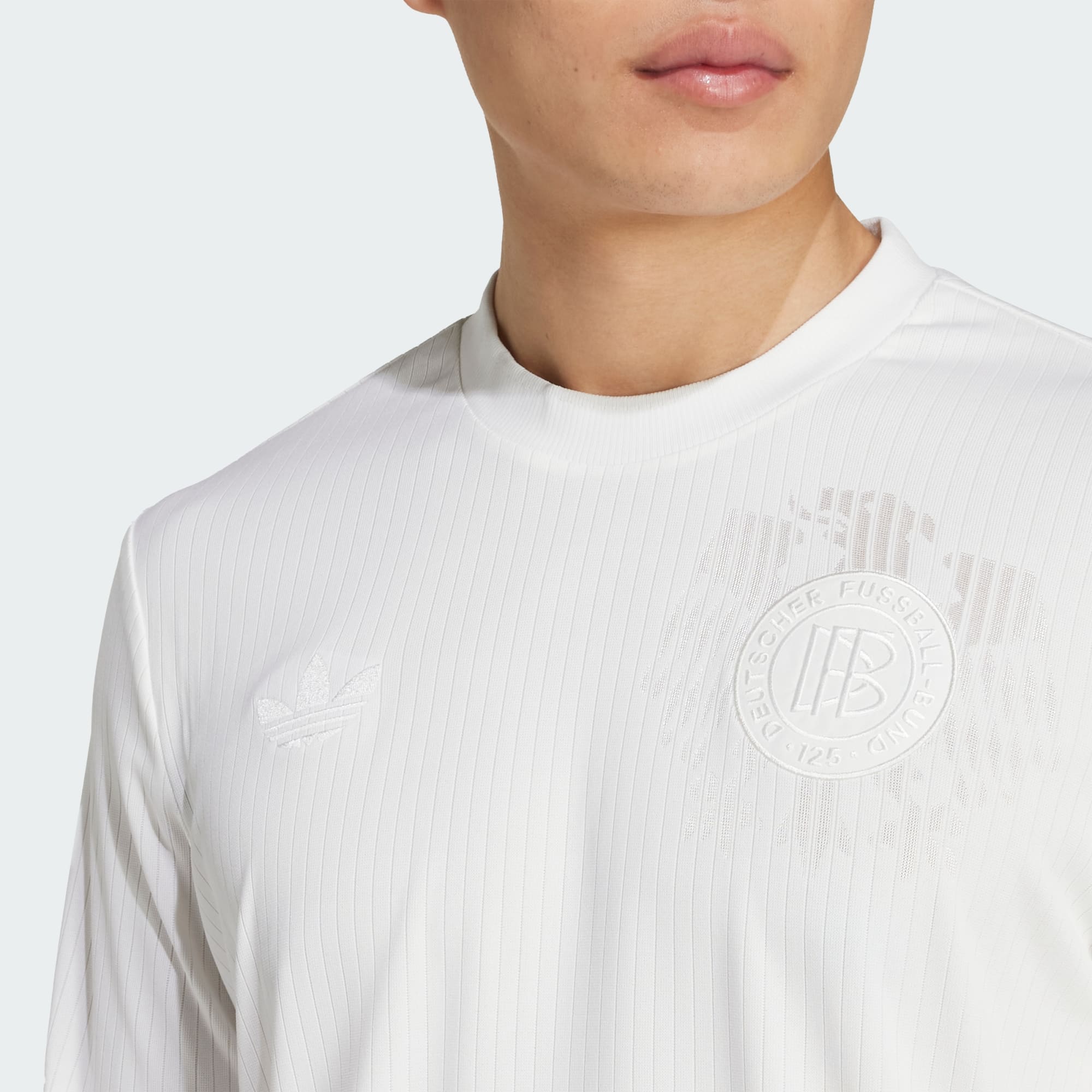 Feier mit uns das 125-jährige Jubiläum der deutschen Nationalelf und ihre lange Verbundenheit mit den 3-Streifen. Diese Jubiläumsausrüstung ist von legendären adidas Ausrüstungen aus der Vergangenheit inspiriert und kommt mit einem Trikot mit dezenten Nadelstreifen und einem Ton in Ton gehaltenen Adler. Die AEROREADY Technologie und das weiche, glatte Material sorgen für ein bequemes Tragegefühl. Ein besonderes Detail erinnert an die Gedenktafel zur Gründung des DFB in Leipzig. Dieses Produkt ist mit 100 % recycelten Materialien hergestellt. Die Wiederverwendung bereits vorhandener Materialien hilft uns dabei, Müll zu reduzieren, unsere Abhängigkeit von nicht erneuerbaren Ressourcen einzuschränken und den CO2-Fußabdruck unserer Produkte zu verringern.