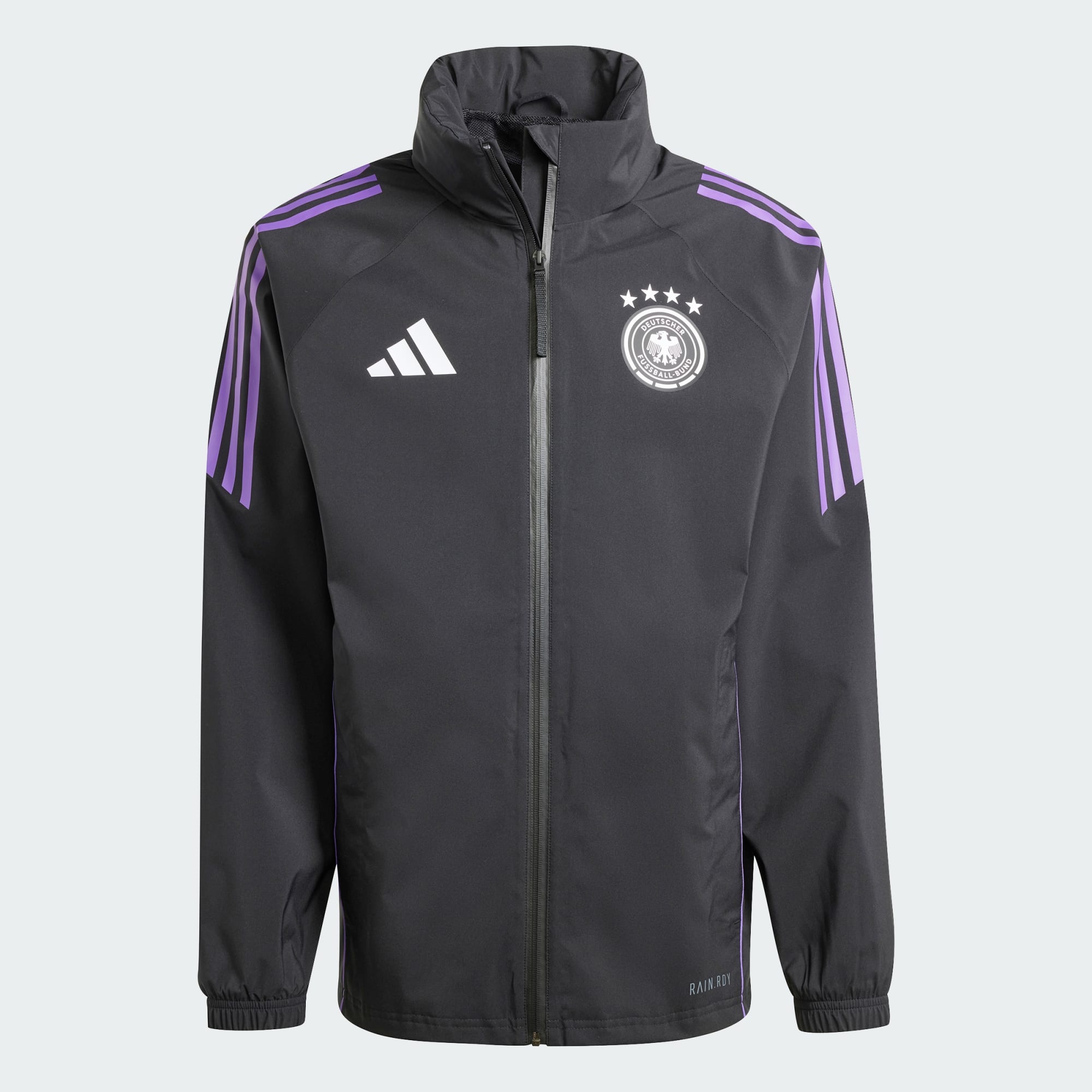 Nicht mal Regen kann deine Fußball-Leidenschaft ausbremsen. Mit der Kapuze mit weitenregulierbarem Gummizug und der RAIN.RDY Technologie hält dich diese adidas DFB Jacke auch bei Nässe angenehm trocken, damit du dich voll und ganz aufs Training konzentrieren kannst. Und wenn der Himmel aufklart, lässt sich die Kapuze ganz easy verstauen. Natürlich darf auch das DFB Logo für den finalen Touch nicht fehlen. Dieses Produkt ist mit mindestens 70 % recycelten Materialien hergestellt. Die Wiederverwendung bereits vorhandener Materialien hilft uns dabei, Müll zu reduzieren, unsere Abhängigkeit von nicht erneuerbaren Ressourcen einzuschränken und den CO2-Fußabdruck unserer Produkte zu verringern.
