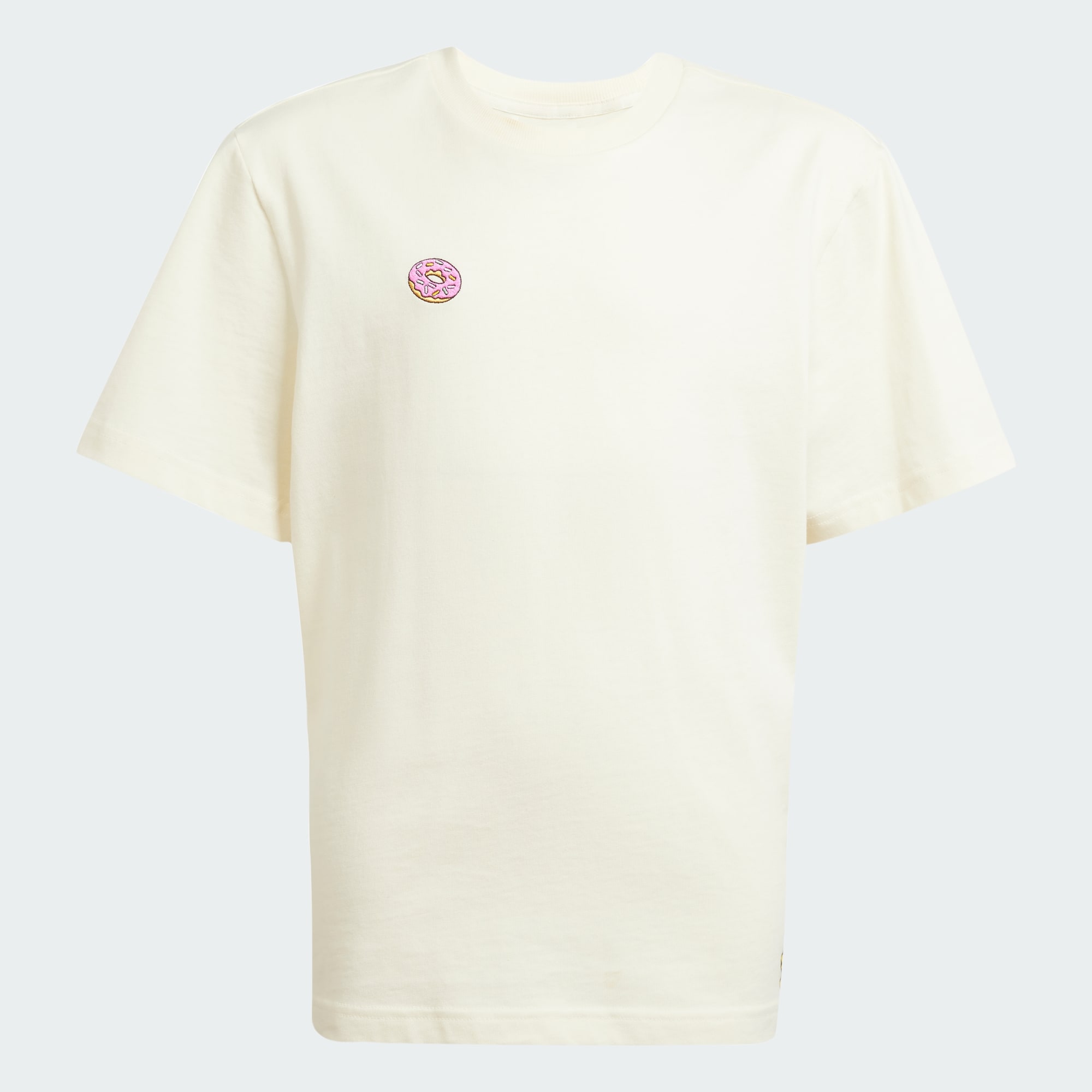 Mmm. Donut. Dieses adidas x The Simpsons T-Shirt fängt den verspielten Geist der gelben Lieblingsfamilie ein. Es ist aus dehnbarer Baumwolle mit einer locker geschnittenen Passform gefertigt und hat eine kleine Simpsons-Donut-Stickerei auf der Vorderseite. Auf der Rückseite befindet sich eine gewölbte adidas Grafik über einem Bild von Homer Simpson in einem Trainingsanzug.