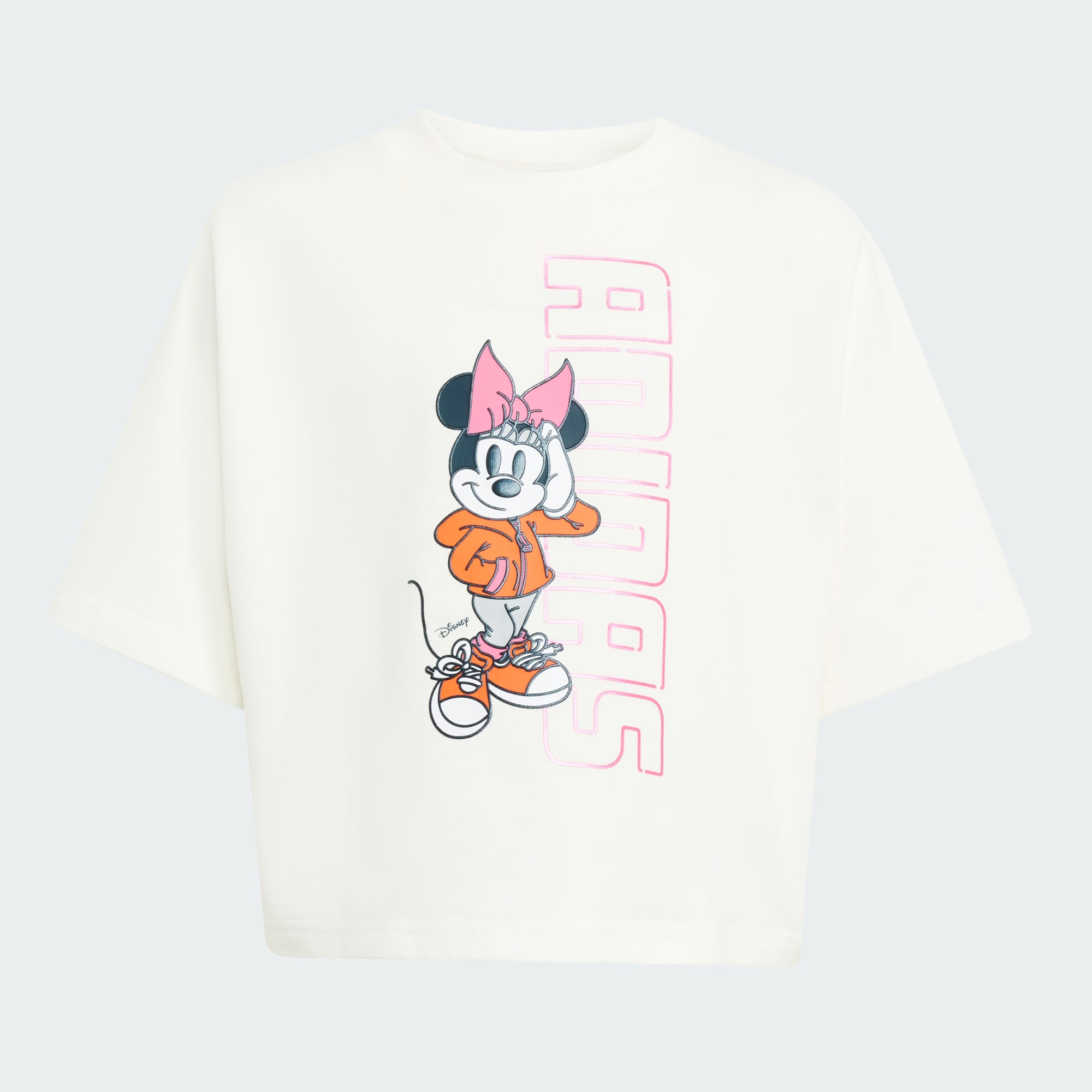 Mädchen, die Minnie Maus lieben, werden in diesem adidas T-Shirt für Kinder einen weiteren Grund zum Lächeln finden. Es ist wie gemacht zum Spielen und überzeugt mit weichem Material und einem lockeren, lässigen Schnitt. Es hat eine sportliche, leicht kürzer geschnittene Silhouette und eine Signature-Grafik von Minnie Maus auf der Vorderseite, die dem lässigen Stil einen magischen Touch verleiht.