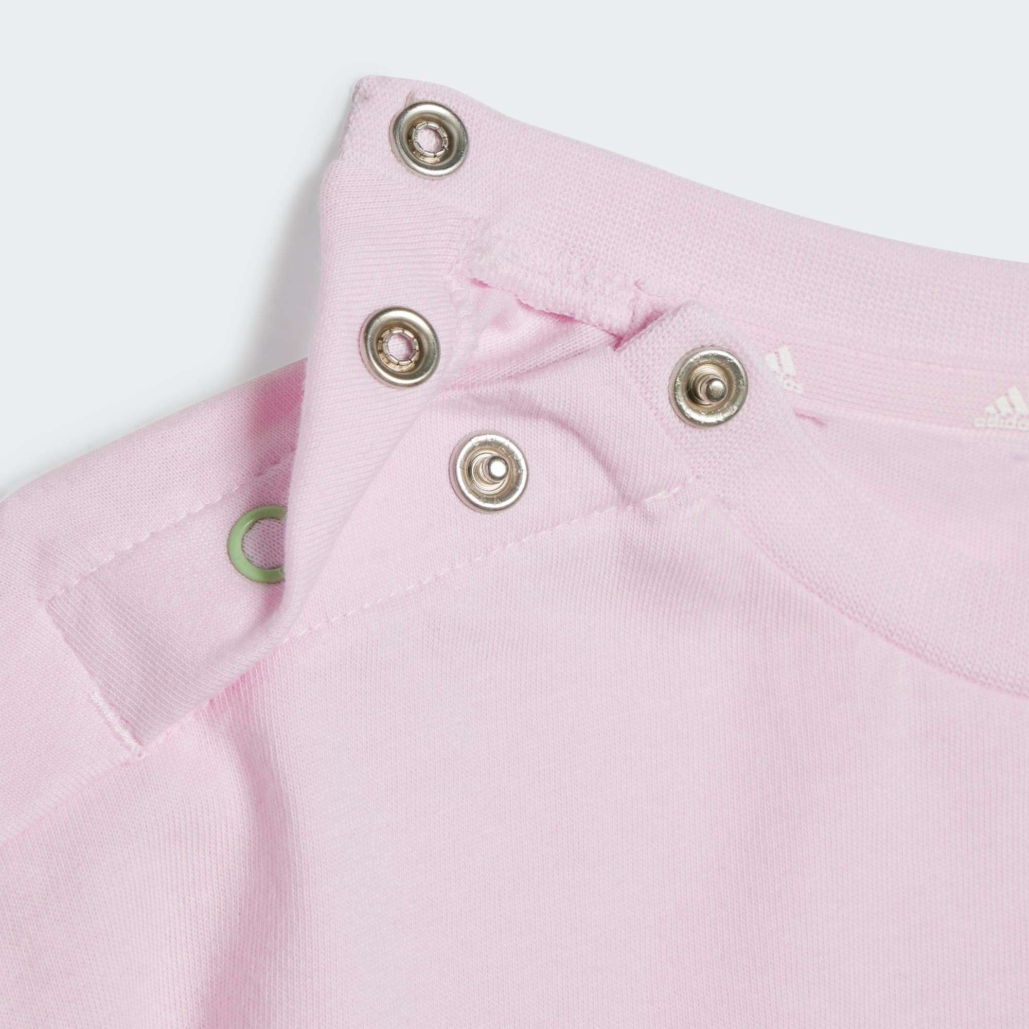 - Rundhalsausschnitt; Druckknopfleiste an der Schulter