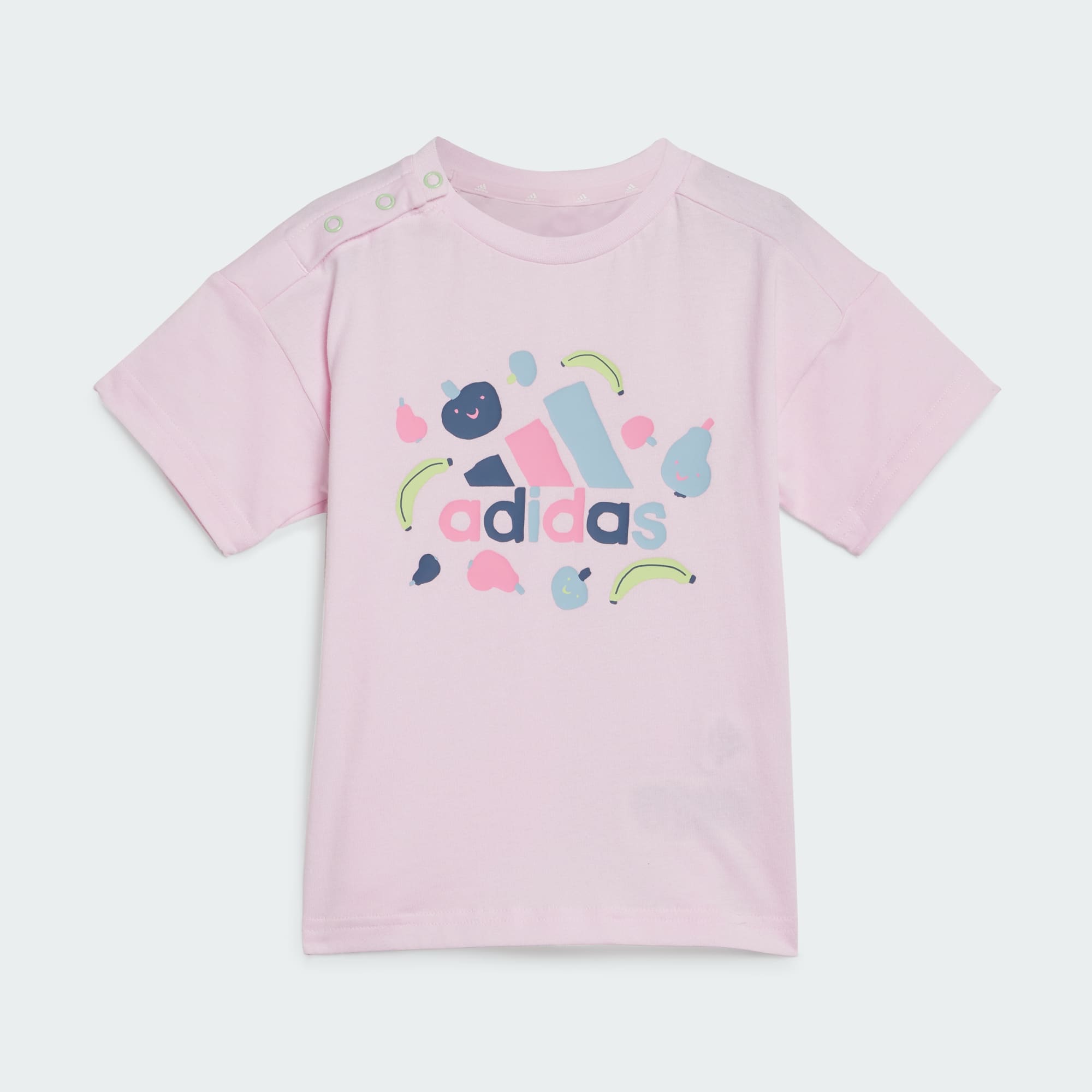 Dieses cute adidas Set für Babys und Kleinkinder bietet den perfekten Mix aus Komfort und Style. Während das T-Shirt aus Baumwolljersey mit einem niedlichen Obst-Print gute Laune versprüht, kommen die weichen Shorts mit den legendären 3-Streifen. Der weitenregulierbare Bund sorgt außerdem für einen sicheren Sitz. Egal, ob mit dem Bilderbuch auf der Couch oder beim Spielen im Garten – dieses bequeme Set für Babys und Kleinkinder ist immer die perfekte Wahl. Die Baumwolle für dieses Produkt stammt aus der Better Cotton Initiative. Better Cotton wird durch das Chain-of-Custody-Modell der Massenbilanz bezogen. Dadurch ist bei Better Cotton keine physische Rückverfolgung bis zum Endprodukt möglich. Hier erfährst du mehr: https://bettercotton.org/who-we-are/our-logo/