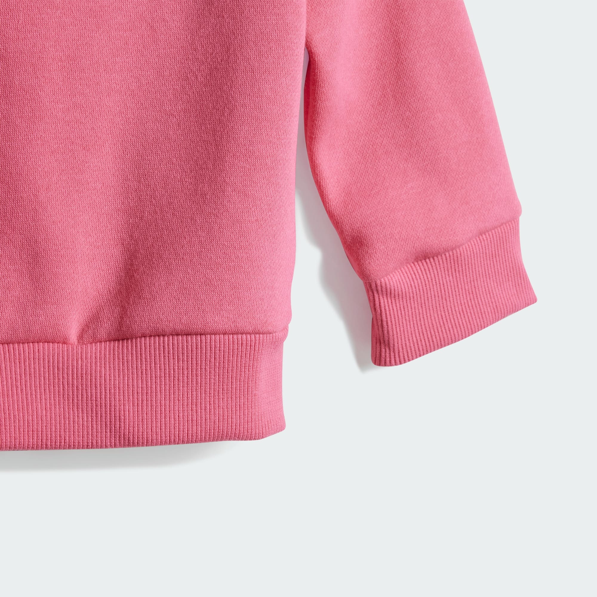 Dieses Set aus Pullover mit Rundhalsausschnitt und Jogginghose für Babys und Kleinkinder ist weich, gemütlich und perfekt für Abenteuer jeder Art. Das vielseitige Design passt zu allem und sorgt mit elastischem Bund und Rippbündchen für einen sicheren Sitz. Ein großes 3-Streifen Logo verleiht ihr außerdem einen sportlichen Look. Durch den Einsatz von Recyclingmaterialien können wir bereits vorhandene Gewebe und Fasern wiederverwenden und so dazu beitragen, Müll zu reduzieren. Auch erneuerbare Materialien sind ein Weg, uns weniger abhängig von nicht erneuerbaren Ressourcen zu machen. Unsere Produkte, die mit einem Mix aus recycelten und erneuerbaren Materialien hergestellt sind, bestehen zu mindestens 70 % aus diesen Materialien.