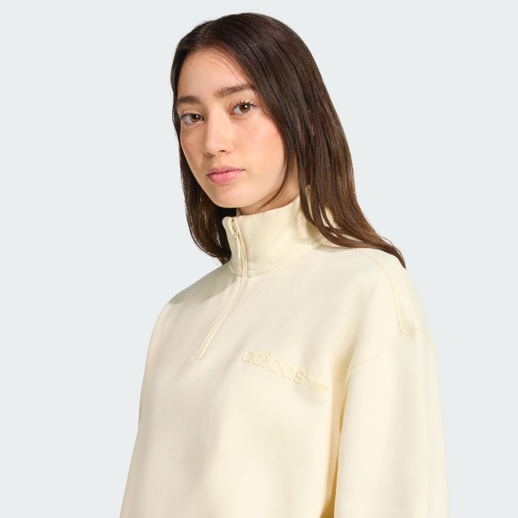 Bei diesem adidas Oberteil trifft maximaler Komfort auf minimalistischen Style. Der dezente adidas Schriftzug auf der Brust zeigt deine Begeisterung für die Marke, während der Reißverschluss bis zur Brust für eine individuelle Passform sorgt. Es hat eine Oversize-Passform und lässt sich perfekt über einem T-Shirt oder Tanktop tragen. Kombiniert mit deiner Lieblingsjogginghose oder Jeans wird ein lässiger Look draus.