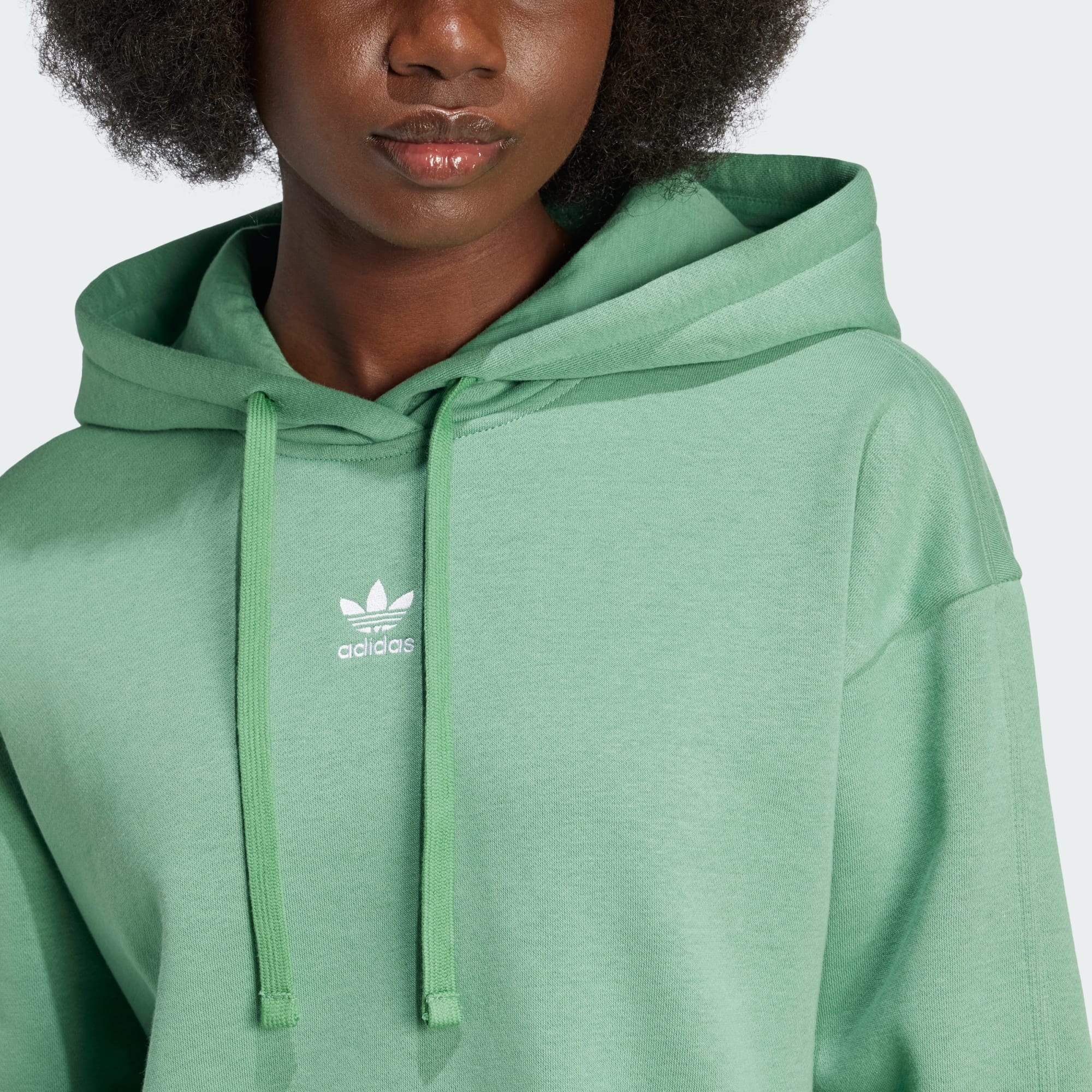 Dieser adidas Essentials Hoodie ist aus weichem Material mit flauschiger Innenseite und garantiert dir ein bequemes Tragegefühl. Die lockere Passform sorgt für einen lässigen Vibe – perfekt für entspannte Tage unterwegs und zu Hause. Kombiniert mit Leggings oder einer Jogginghose wird ein lässiger Look draus. Egal, wie du es trägst, das kuschelige Material und die lockere Passform machen es zum perfekten Layering-Piece.