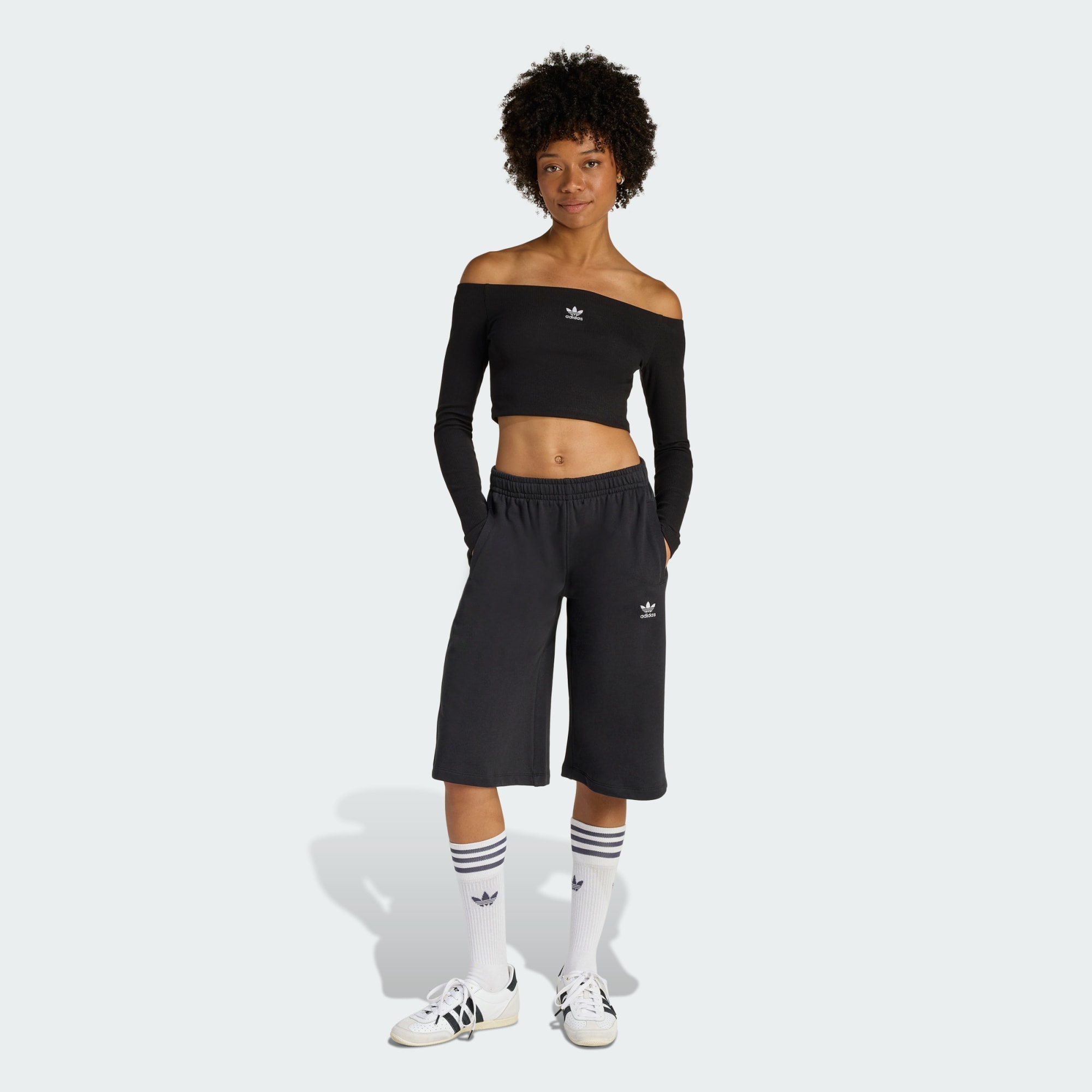 Stil trifft Komfort mit dem Essentials Rib Off Shoulder Longsleeve. Für alle, die einen trendigen Stil suchen, bietet dieses Teil eine vielseitige Option, der sich mühelos in deine Alltagsgarderobe einfügt. Das schulterfreie Design verleiht dem Modell einen Hauch an Eleganz und macht es zu einer großartigen Wahl sowohl für legere Ausflüge als auch für gesellige Treffen. Dieses Oberteil aus geripptem Material besticht durch seine schmale Passform, die sich um deine Silhouette schmiegt. Das bequeme Strickmaterial fühlt sich weich auf der Haut an, so dass du dich frei und selbstbewusst bewegen kannst. adidas Originals bringt dir ein Teil, das auch dann ein Style-Statement setzt, wenn du es dir zu Hause gemütlich machst. Genieße die Vielseitigkeit dieses einzigartig modischen Shirts und lass es zu einem festen Bestandteil deiner Garderobe werden.