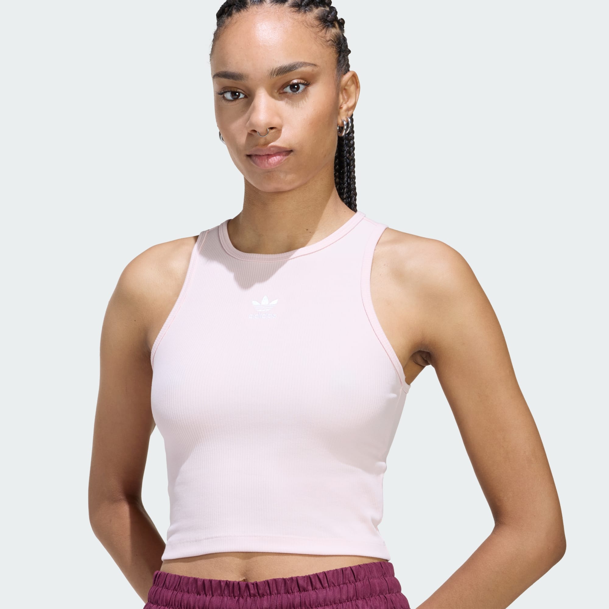 Mit diesem bequemen adidas Tanktop bist du stylish und bequem unterwegs. Es ist aus leichtem Rippstrick, der sich deinem Körper mit seinem eng anliegend Schnitt an genau den richtigen Stellen anpasst. Kombiniert mit einer Jogginghose oder Jeans wird ein angesagter Look draus.