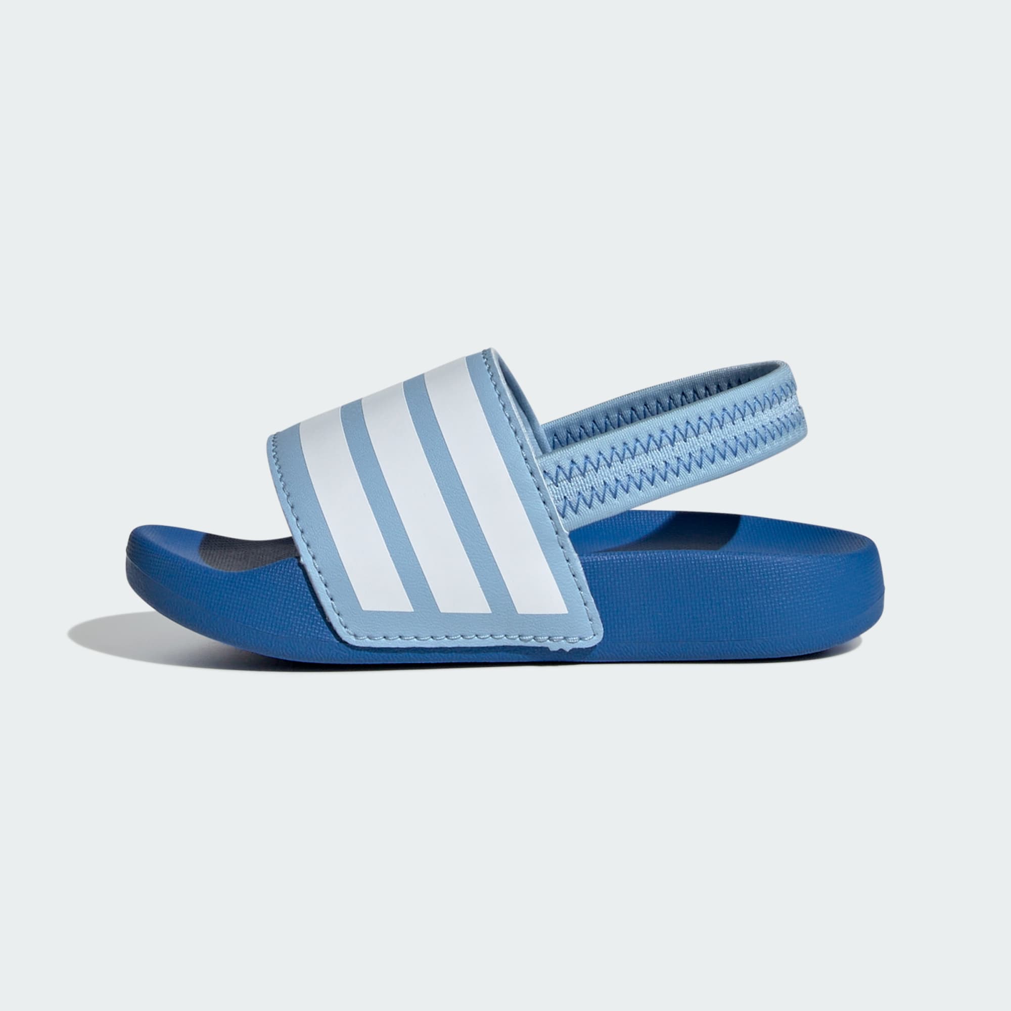 Diese Adilette für Babys und Kleinkinder ist ideal für kleine Wirbelwinde. Sie ist von der legendären, klassischen Adilette inspiriert und macht sich auch auf dem Spielplatz gut. Die Kombi aus einteiligem Riemen und elastischem Fersenriemen erleichtert das An- und Ausziehen.