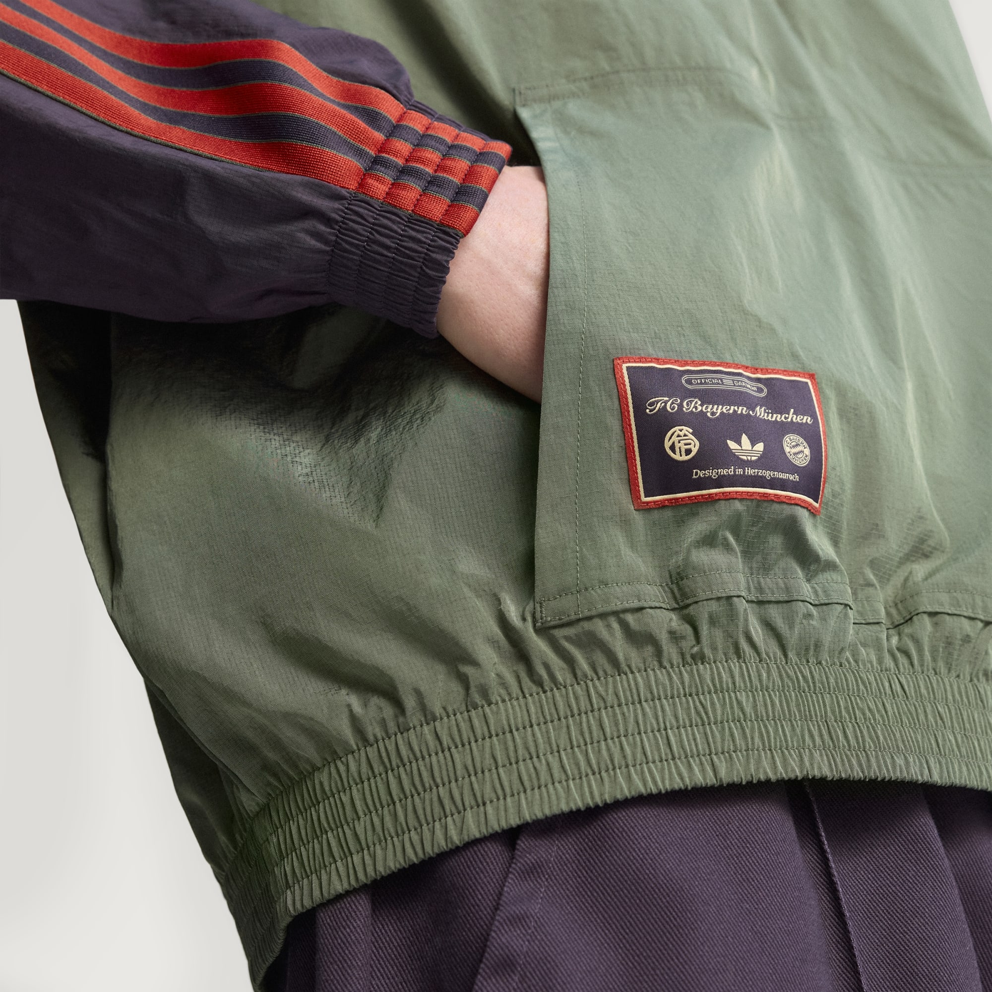 Zeige deine Leidenschaft für den FC Bayern München in dieser locker sitzenden Jacke, die sich an der Fußballgeschichte inspiriert.