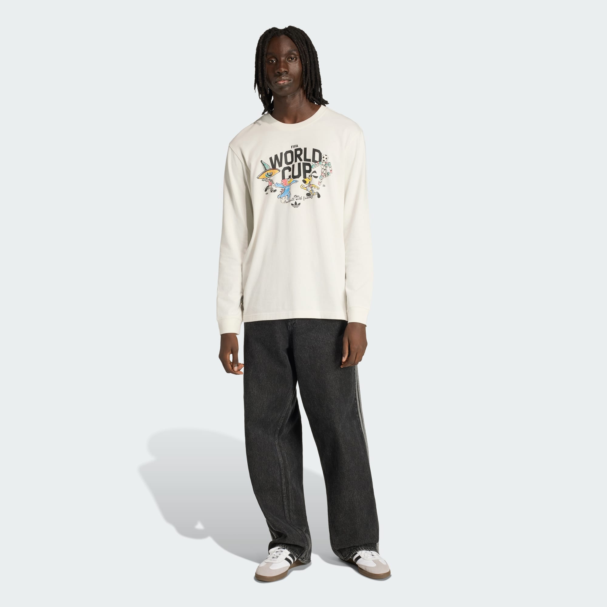 Wenn es um Fußballkultur geht, ist das langärmlige FIFA WM 26™ Maskottchen-Trikot eine Hommage an das Vermächtnis und den Style, die die Aufregung der Weltmeisterschaft zum Leben erweckt. Es ist aus 100 % Single Jersey aus Baumwolle gefertigt und bietet mit den langen Ärmeln ein weiches und bequemes Tragegefühl für den Alltag. Das Trefoil Branding sorgt für einen Hauch von adidas-Tradition. Ganz gleich, ob du dein Lieblingsteam anfeuerst oder einfach nur den Tag genießt, mit diesem adidas Piece fühlst du dich wohl und siehst toll aus, wenn du am Spielfeldrand stehst.