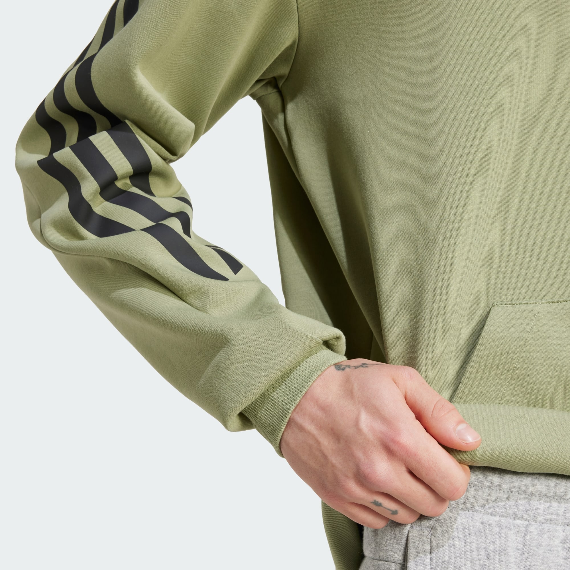 Comfy Hoodies dürfen in keinem Kleiderschrank fehlen. Sie sind echte Alltagshelden. Trag lässigen 3-Streifen Style und fühl dich rundum wohl. Dieser Hoodie bekommt mit den Rippdetails und einer Kängurutasche zum Händewärmen das perfekte Finish. Durch den Einsatz von Recyclingmaterialien können wir bereits vorhandene Gewebe und Fasern wiederverwenden und so dazu beitragen, Müll zu reduzieren. Auch erneuerbare Materialien sind ein Weg, uns weniger abhängig von nicht erneuerbaren Ressourcen zu machen. Unsere Produkte, die mit einem Mix aus recycelten und erneuerbaren Materialien hergestellt sind, bestehen zu mindestens 70 % aus diesen Materialien.