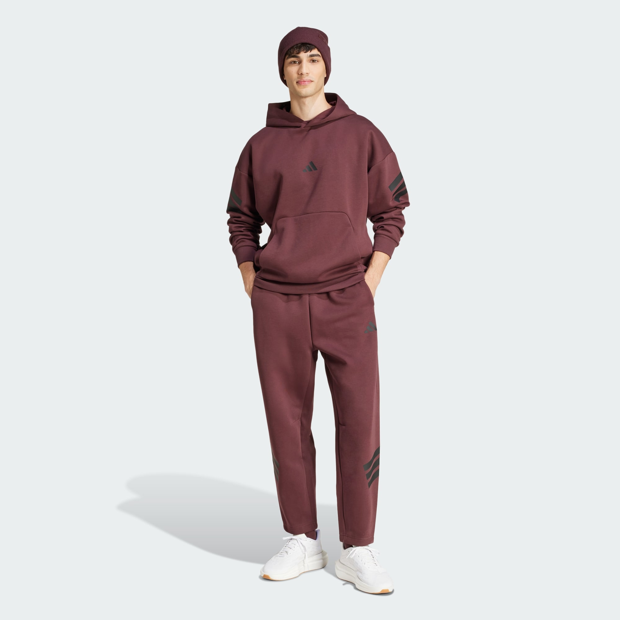 Diese Hose mit den 3-Streifen ist teilweise aus einem Mix aus recycelten und erneuerbaren Materialien hergestellt.