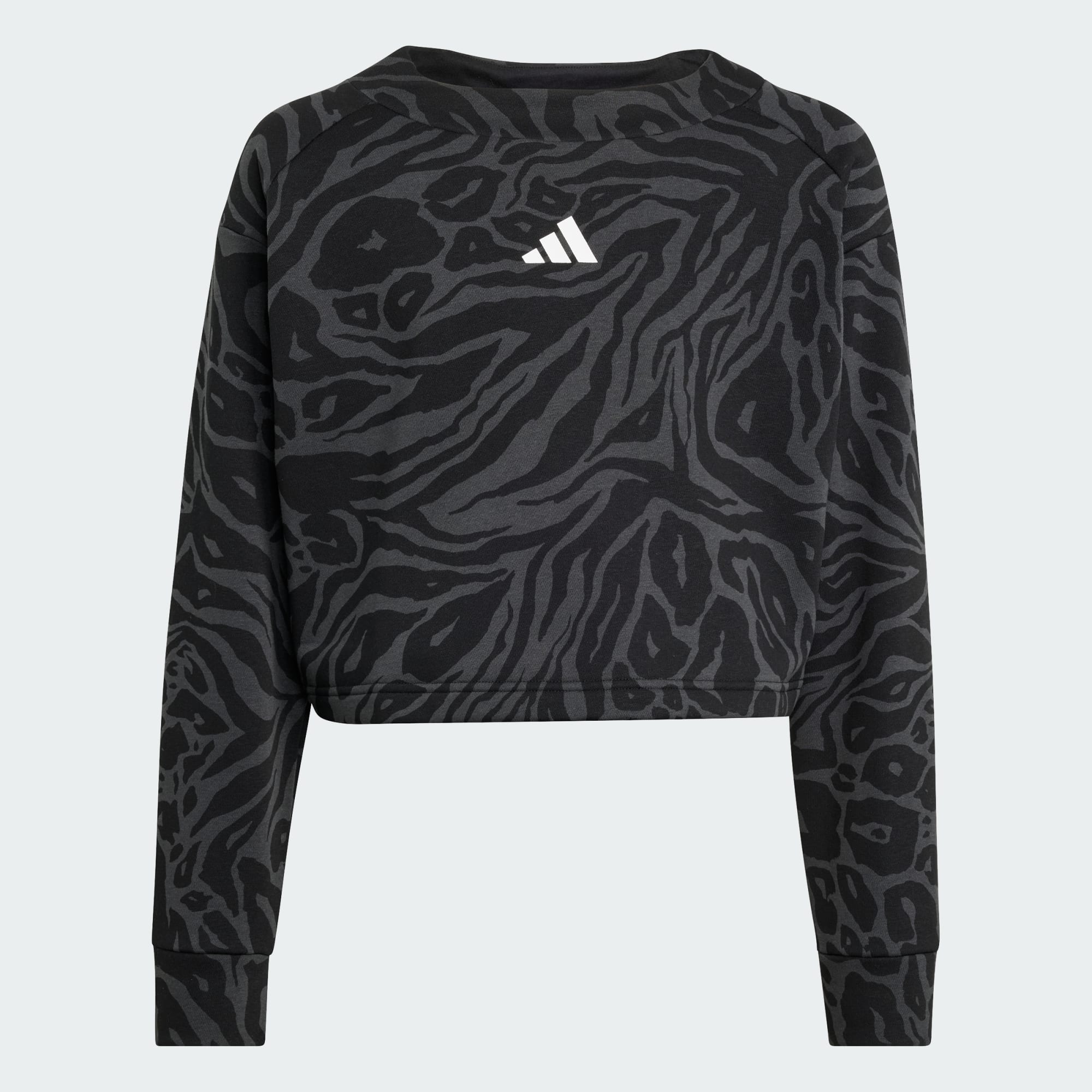 Das adidas Future Icons Cropped Sweatshirt steht für modernen Stil. Es ist aus weichem, warmem Fleece und bauchfrei – fürs Fitnessstudio oder zum Entspannen zu Hause. Es hat einen modernen Allover-Print und ein 3-Bar-Logo mittig auf der Vorderseite für den Signature Touch.
