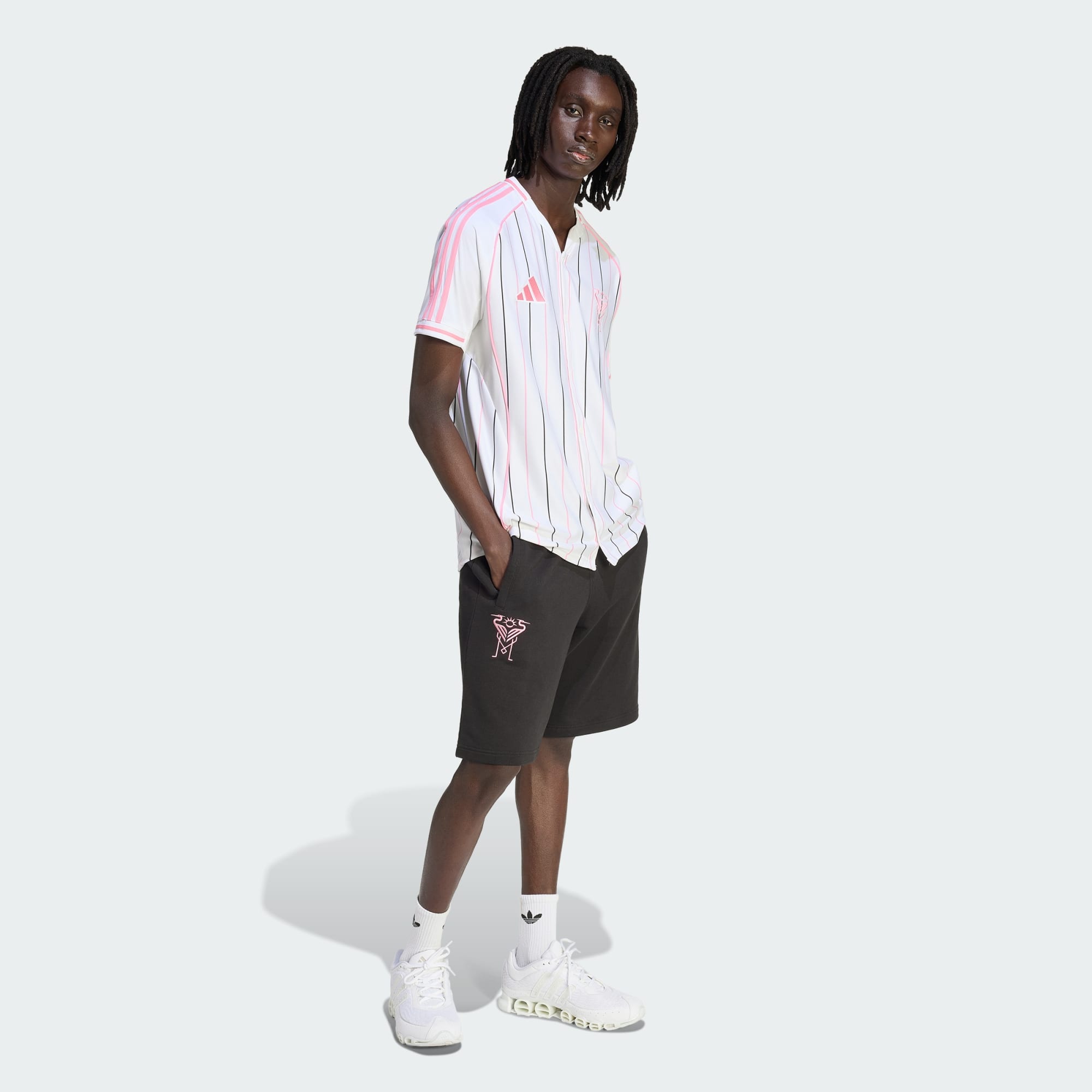 Tritt ein in die Welt der Sportkultur mit dem Inter Miami CF Baseballtrikot, bei dem der klassische Charme des Baseballs auf die dynamische Energie des Fußballs trifft. Das Nadelstreifendesign ist eine Hommage an die traditionelle Baseball-Ästhetik, während die Fußballmotive dem Ganzen einen modernen Twist verleihen. Damit ist das Trikot eine großartige Wahl für Fans, die eine Verschmelzung des sportlichen Erbes zu schätzen wissen. Das Trikot ist regulär geschnitten. So erhältst du Komfort für jeden Tag, egal ob du von der Tribüne aus jubelst oder in der Stadt unterwegs bist. Der Knopfverschluss und der Henley-Halsausschnitt sorgen für einen Hauch von klassischer Eleganz, während das Vereinslogo deine Unterstützung für dein Team unterstreicht. Mit seinem 3-Streifen-Branding und dem gestickten Logo ist das Trikot ein Beweis für das Engagement von adidas in Sachen Qualität und Design. Dieses adidas Trikot ist mehr als nur Kleidung. Es ist ein Ausdruck deiner Leidenschaft für Style und Sport.
