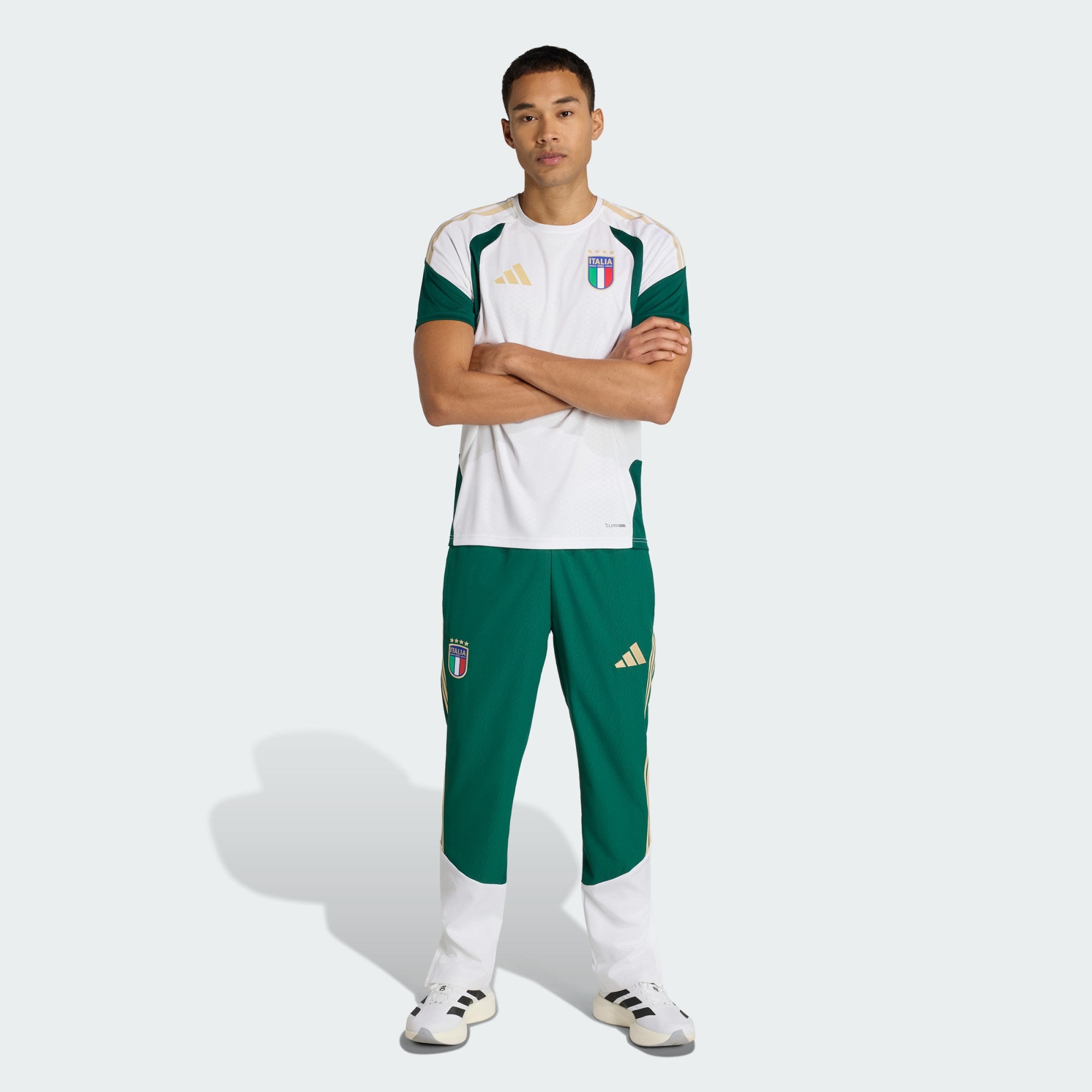 Betritt das Spielfeld voller Selbstvertrauen in der Italien 26 Tiro Präsentationshose. Die von der Eleganz und dem Erbe des italienischen Fußballs inspirierte Hose verbindet klassischen Style mit moderner Funktionalität. Das leichte, gewebte Material sorgt dafür, dass du es bequem hast und agil bleibst, egal ob du mit dem Team unterwegs bist, dich aufwärmst oder abkühlst. Sie ist mit einem mittelhohen Bund und einem Kordelzug ausgestattet, über den die Passform individuell verstellt werden kann. Das adidas Logo und die 3-Streifen liefern das gewünschte unverkennbare Branding, das die Fußballkultur feiert. Diese Hose aus der Sport Performance-Kollektion wurde für Fußballbegeisterte entworfen und verkörpert die Essenz des italienischen Fußballs. Sie zollt der Tradition Tribut und blickt gleichzeitig in die Zukunft – perfekt für diejenigen, die den Fußball leben und atmen.