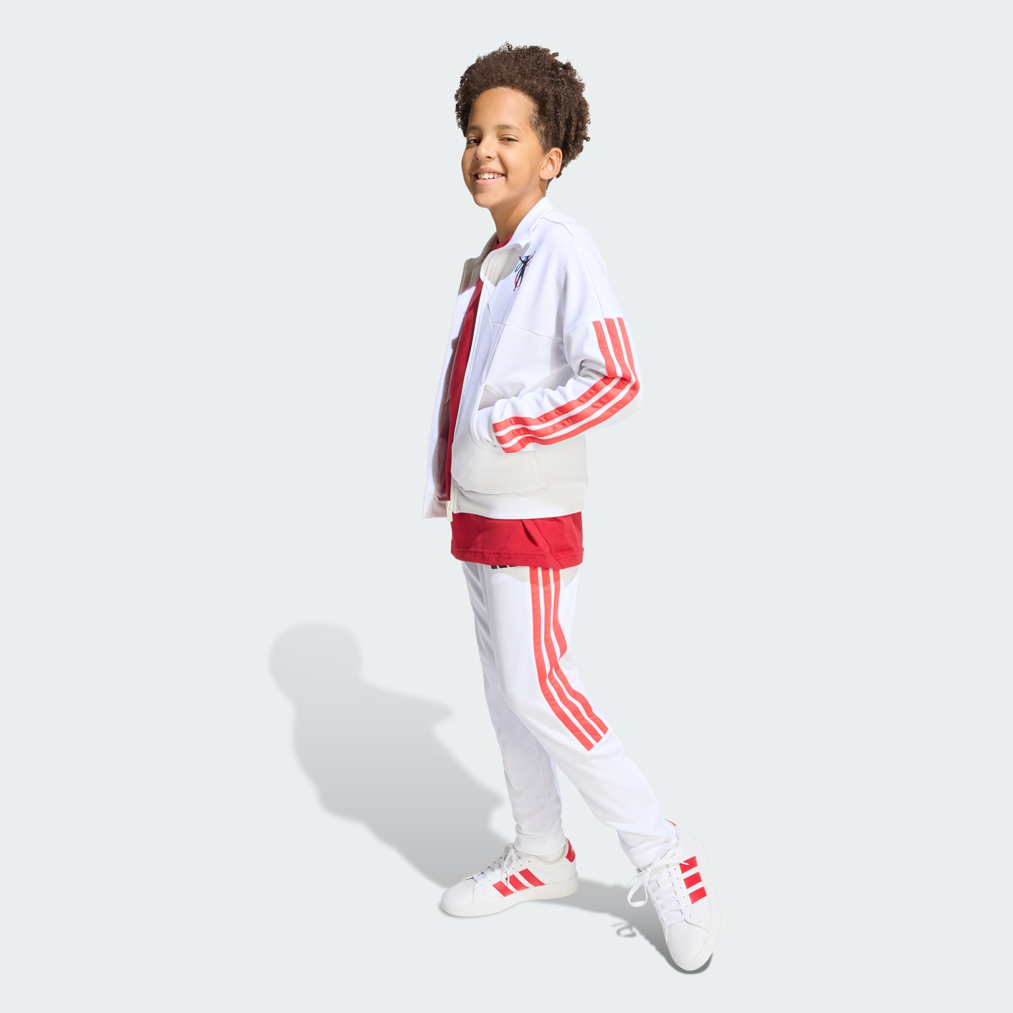 Das vom dynamischen Geist von Jude Bellingham inspirierte Track Top für Kinder sorgt dafür, dass junge Fußballenthusiast_innen stylish aussehen und sich wohlfühlen. Ob beim Spielen, in der Schule oder beim Sport, dieses Modell fügt sich nahtlos in den Alltag deines Kindes ein. Das Top aus weichem Interlock-Material hat eine bequeme, reguläre Passform und einen praktischen Reißverschluss für ein einfaches An- und Ausziehen. Die kühnen 3-Streifen und das kultige 3-Riegel Logo auf der Brust zeugen vom adidas Erbe, während das JB-Logo Jude Bellinghams bleibenden Einfluss auf die Welt des Fußballs würdigt. Lass dein Kind mit diesem stylishen und funktionalen Track Top seine Leidenschaft für den Fußball ausdrücken.