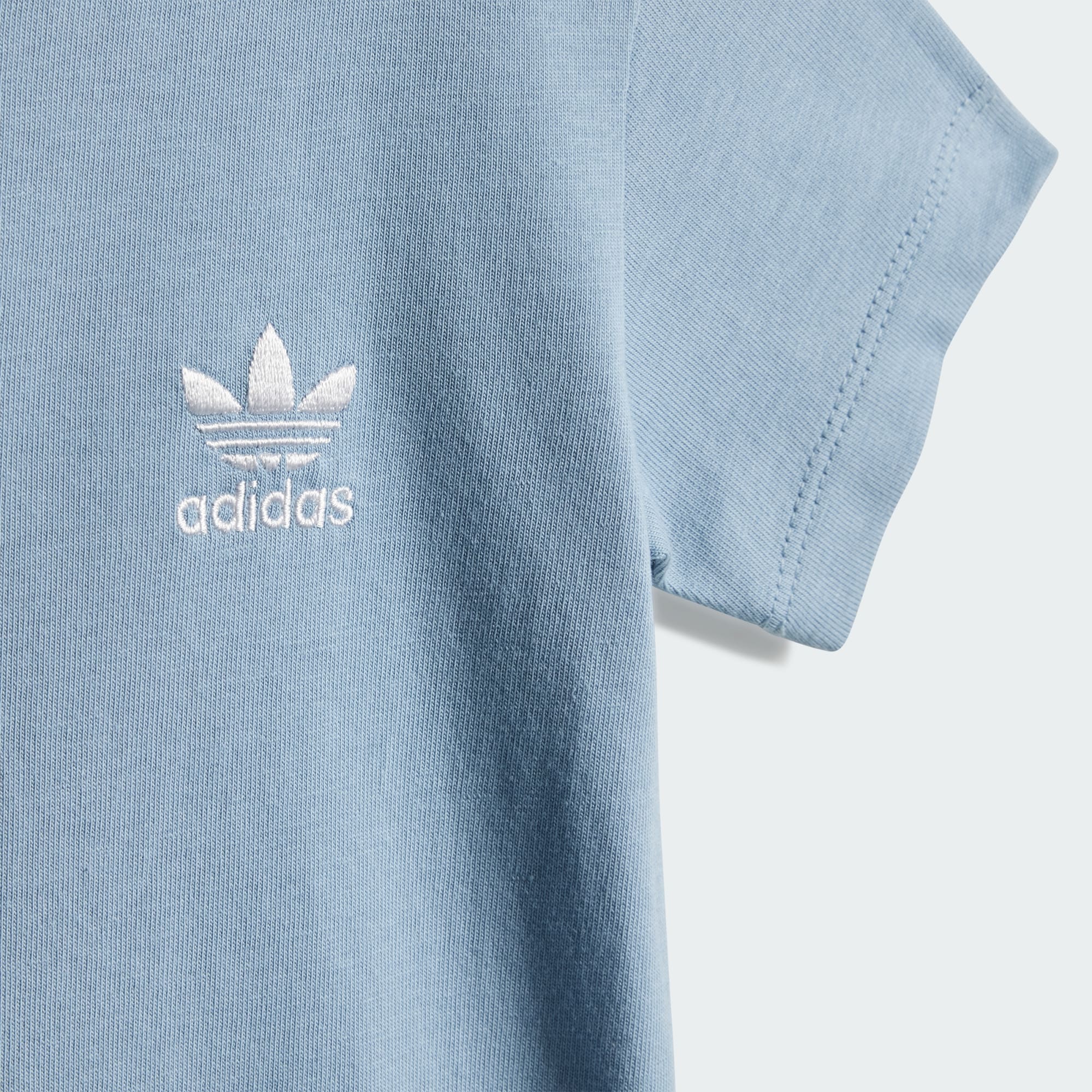Bei diesem Set aus Shorts und T-Shirt für Babys und Kleinkinder steht Komfort an erster Stelle. Es ist aus weichem Single Jersey aus Baumwolle und hat einen Druckknopfverschluss am T-Shirt für einfaches An- und Ausziehen. Die aufgestickten Trefoil Logos auf der Brust und an den Beinen sorgen zusammen mit den Rippdetails für klassischen Sportstyle. Dieses Produkt ist aus Better Cotton Baumwolle gefertigt. Better Cotton wird durch das Chain-of-Custody-Modell der Massenbilanz bezogen. Dadurch ist bei Better Cotton keine physische Rückverfolgung bis zum Endprodukt möglich. Hier erfährst du mehr: https://bettercotton.org/who-we-are/our-logo/
