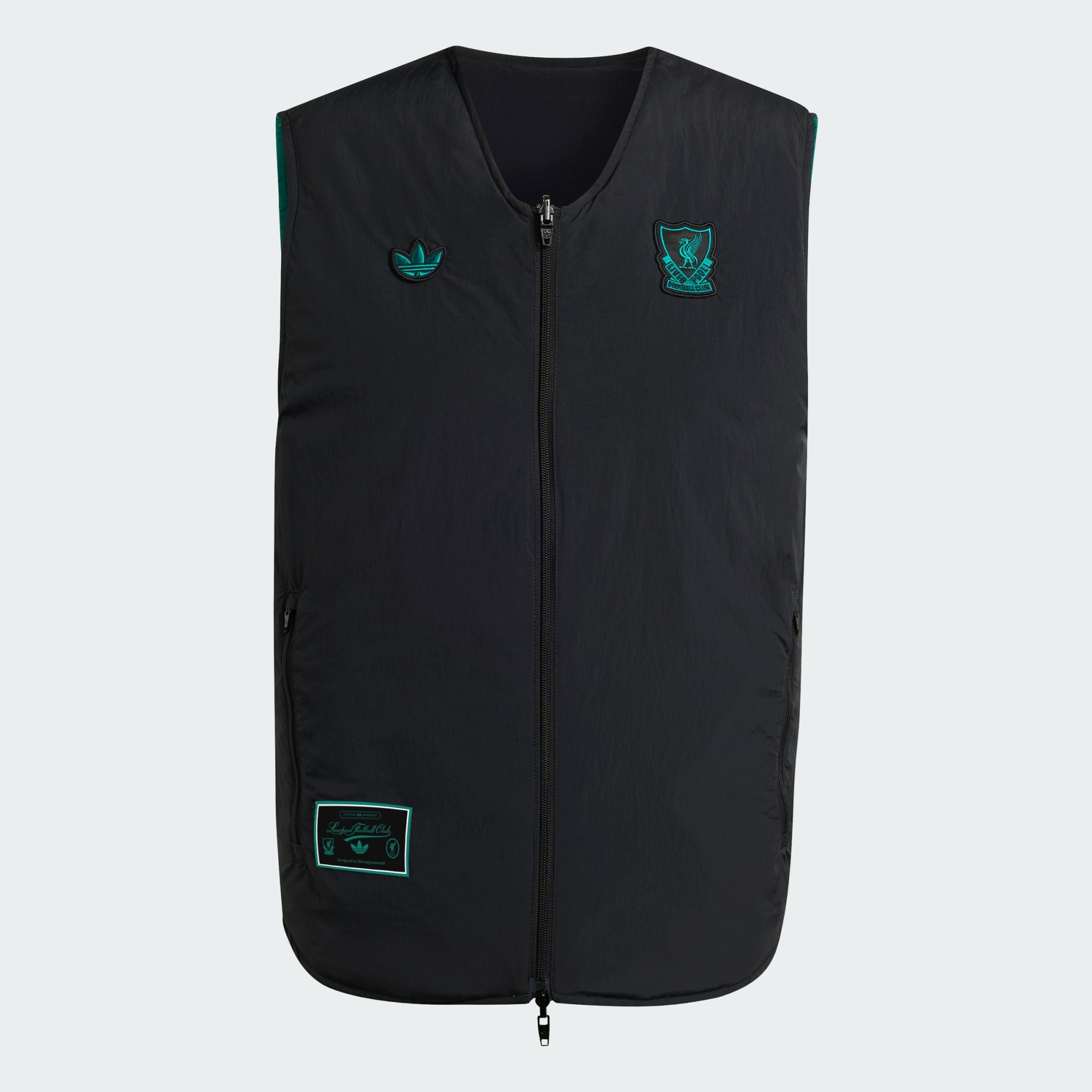 Diese adidas Weste ist eine stilvolle Hommage an das traditionelle Erbe des FC Liverpool. Sie ist inspiriert vom Terrace-Style, eine Mode, die in den 80er Jahren aufblühte. Es ist im Wendedesign gehalten, damit du am Spieltag die Wahl hast, welche Seite du von dir zeigen möchtest. In den Reißverschlusstaschen kannst du wichtige Kleinigkeiten sicher verstauen und das aufgestickte Trefoil vermittelt Vintage-Vibes.