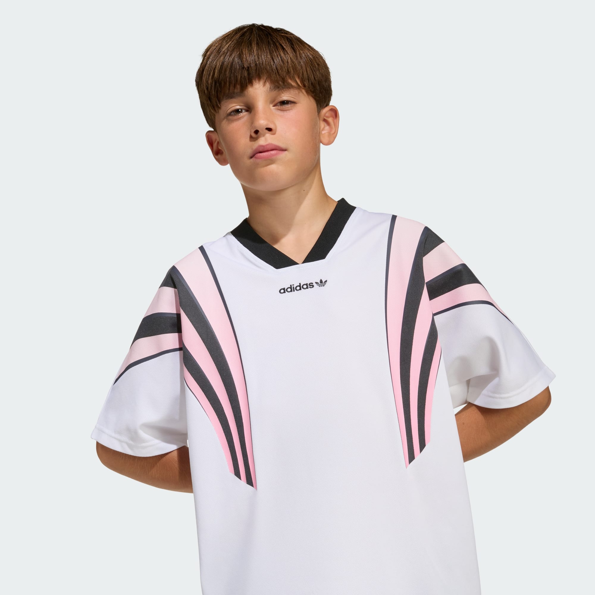 Das Loose Batwing Santiago T-Shirt vereint Sport und Stil und versprüht den Retro-Charme der Fußballkultur der 90er Jahre. Das T-Shirt aus weichem Trikotmaterial hat eine lockere Passform und bietet uneingeschränkte Bewegungsfreiheit – ideal für jeden Tag. Die Fledermausärmel verleihen dem Top einen einzigartigen Flair, sodass du in jeder Menge auffällst. Der Rundhalsausschnitt sorgt für Tragekomfort und Vielseitigkeit. Ob beim Spielen oder bei einen Ausflug: Mit diesem adidas T-Shirt siehst du gut aus.