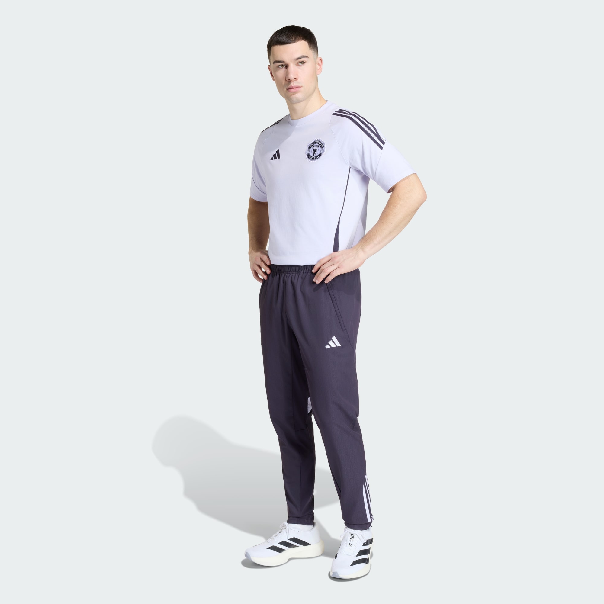Mit dieser adidas Trainingshose Manchester United zeigst du deine Begeisterung für Manchester United. Sie sieht aus wie die Version, die die Profis bei Presseterminen tragen. Sie sind aus leichtem, gewebtem Material und kommen mit feuchtigkeitsabsorbierender AEROREADY Technologie für ein angenehm trockenes Tragegefühl. Die von der Auswärtsausrüstung inspirierten Farben und das aufgestickte Vereinslogo lassen außerdem keinen Zweifel daran, welchen Club du supportest.