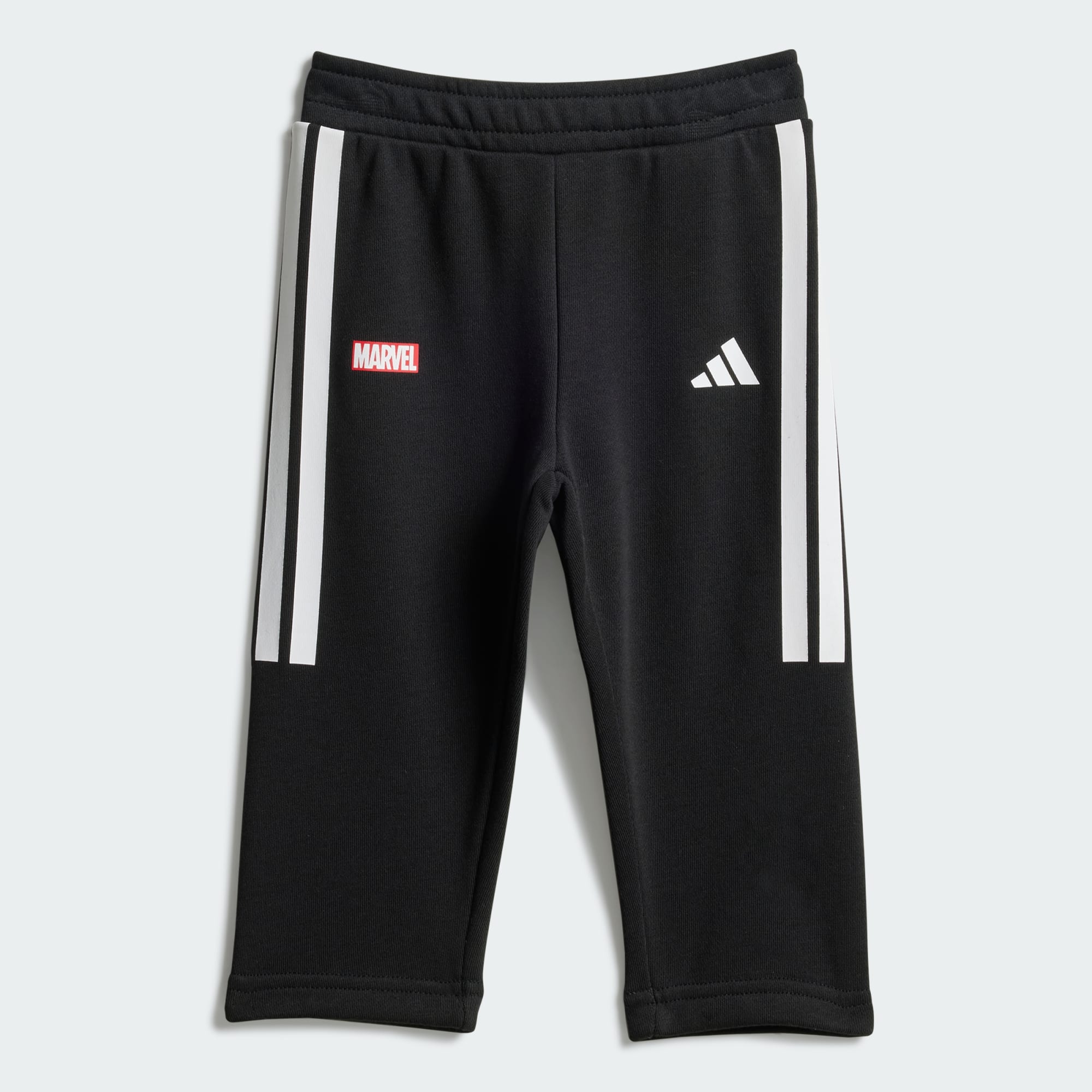 Mit diesem adidas Set aus Jogginghose und Oberteil mit Rundhalsausschnitt für Babys und Kleinkinder ist dein Kind bereit für die Abenteuer des Tages. Das Set besteht aus einem Oberteil mit Rundhalsausschnitt aus French Terry und einer passenden Hose. Es hat eine coole Spider-Man Grafik auf der Vorderseite, entlang der Beine verlaufen die charakteristischen 3-Streifen.
