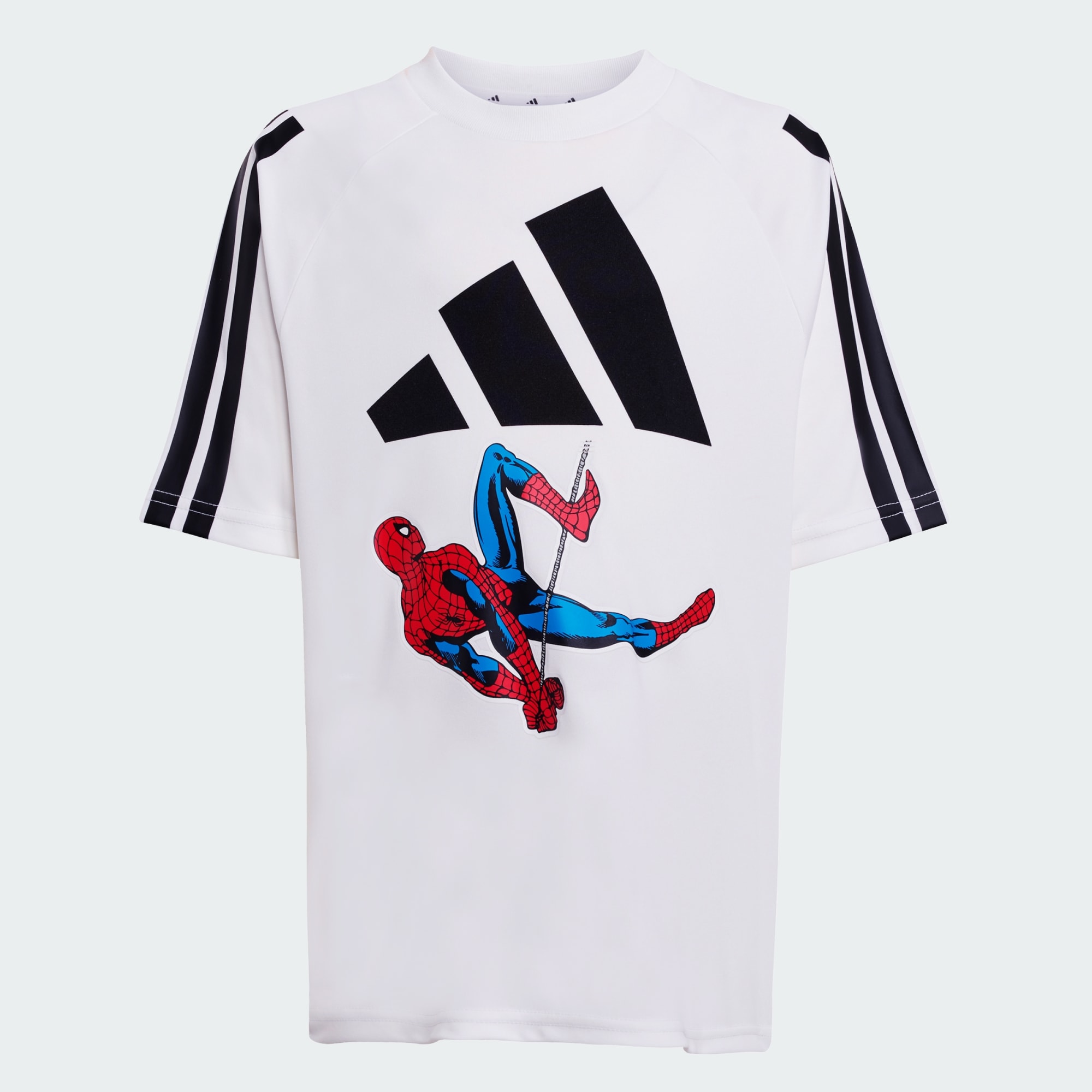 Ein lockeres Spider-Man T-Shirt von adidas, das aus feuchtigkeitsableitendem Material besteht.