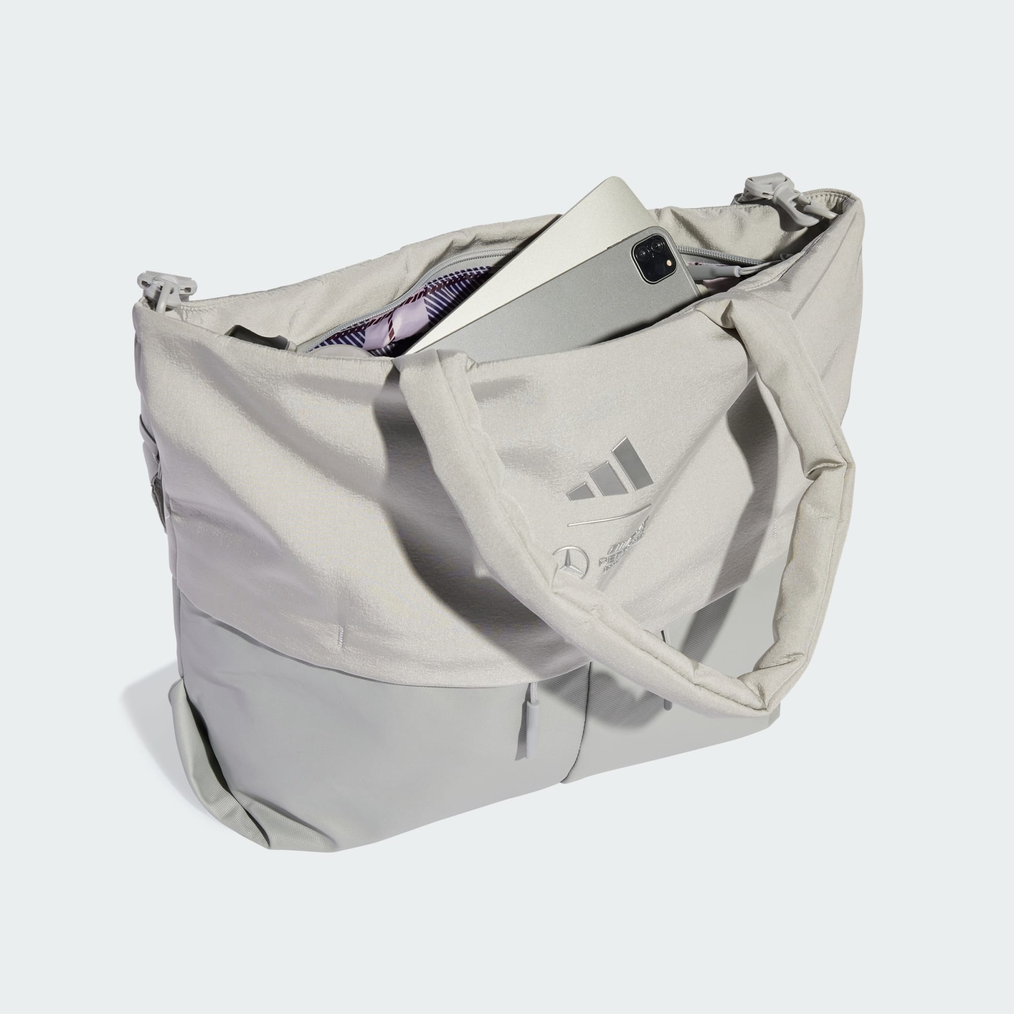 Egal, ob du zum Lauftraining gehst oder einfach nur den Tag verbringst, mit dieser vielseitigen adidas Tragetasche kannst du deine Ausrüstung stilvoll transportieren. Sie wurde aus der Zusammenarbeit mit dem Mercedes-AMG Petronas Formula One Team hergestellt und ziert das Logo des Teams auf der Vorderseite. Diese Tasche bietet Platz für alles, was du brauchst, sodass du dich auf die Action konzentrieren kannst.