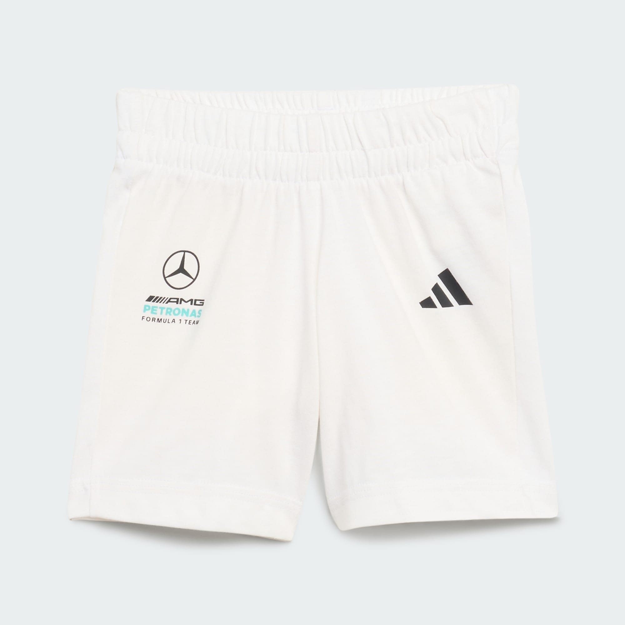Im Mercedes-AMG Petronas Formula 1 Team DNA Jogginganzug mit kurzen Ärmeln sind auch die Kleinsten bequem und stylish gekleidet. In diesem liebevoll gefertigten Jogginganzug wird sich dein Kind beim Spielen und allen anderen Aktivitäten rundum wohlfühlen. Die reguläre Passform gewährleistet ein lässiges Tragegefühl, damit dein Kind die Welt um sich herum frei und unbeschwert erkunden kann. Dieses Set ist aus angenehm weichem Single Jersey gefertigt. Der vollständig elastische Bund sorgt für einen sicheren Sitz und volle Bewegungsfreiheit, damit dem aktiven Spielen keine Grenzen gesetzt sind. Mit den kultigen 3-Streifen und dem aufgedruckten Schriftzug verkörpert dieser Jogginganzug perfekt die sportliche Essenz des Mercedes-AMG Petronas F1-Teams. Ob an einem Tag im Park oder bei einem Ausflug – in dem Jogginganzug fühlt dein Kind sich nicht nur wohl, sondern sieht auch echt cool aus. In diesem Outfit im durchdachten adidas Design kann dein Kind seine Leidenschaft für den Motorsport entdecken.