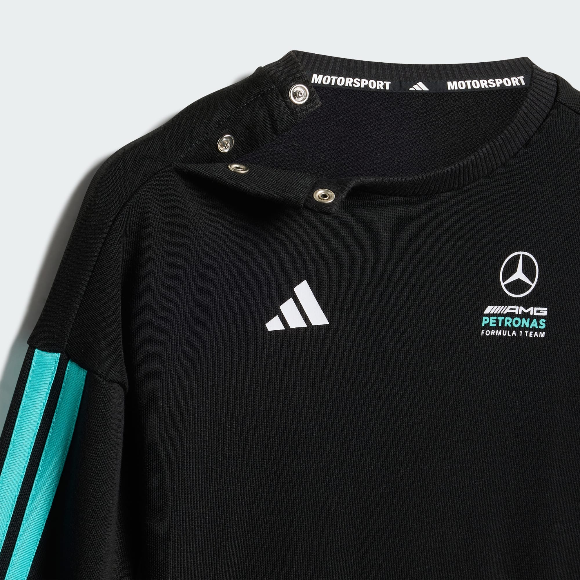 Führe dein Kind mit der Mercedes-AMG Petronas Formula 1 Team DNA Baby Jogginghose und dem Longsleeve mit dem kultigen 3-Streifen Logo in die Welt des Motorsports ein. Die reguläre Passform der Jogginghose ermöglicht aktiven Kids viel Bewegungsfreiheit. Der voll elastische Bund und das langärmelige Oberteil sorgen für einen passgenauen Sitz beim Spielen. Ob beim Familienausflug oder beim Spiel – dein Kind ist Teil der Action. adidas bringt die Begeisterung der Formel 1 in den Kleiderschrank deines Kindes und bietet ihm Komfort und Style.