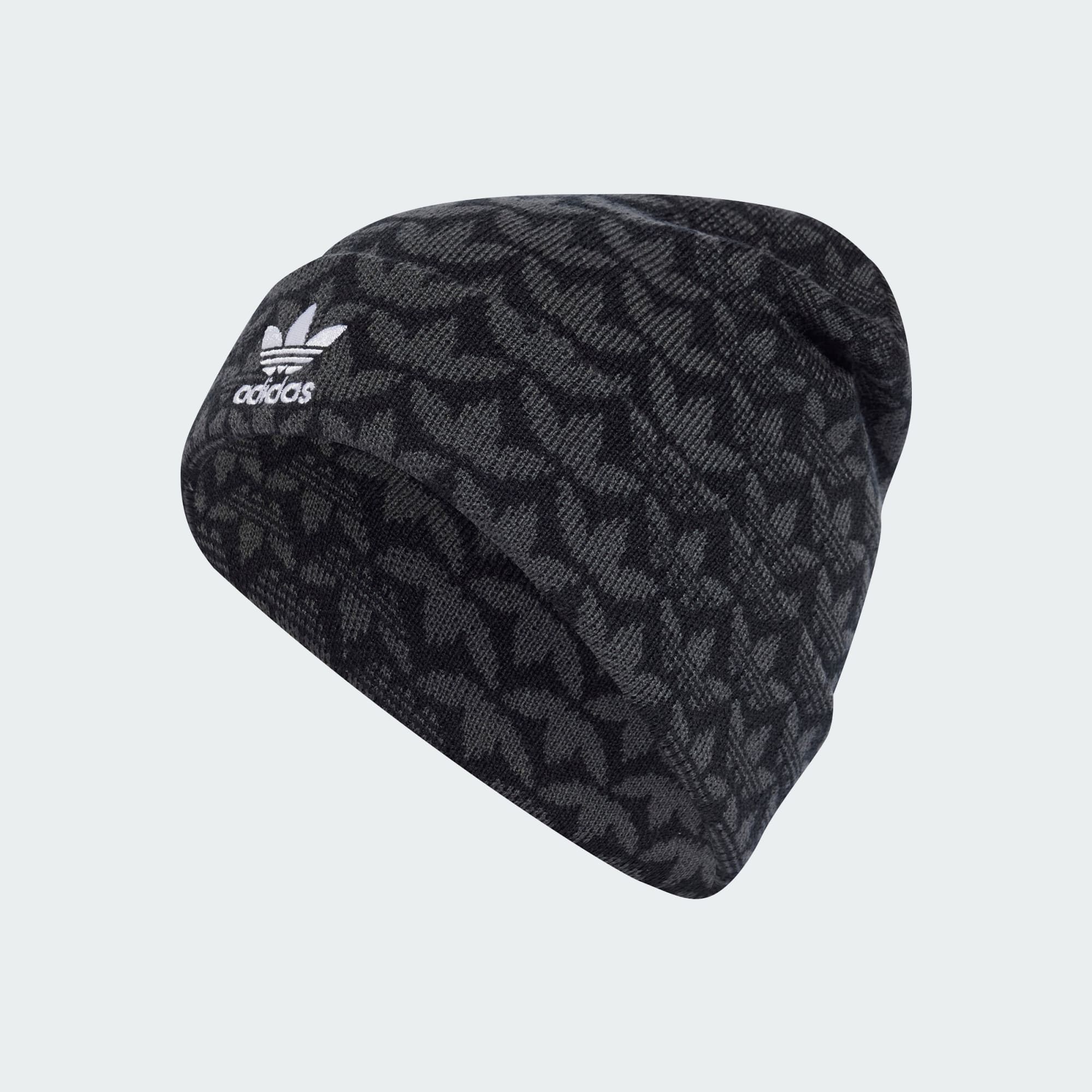 Halte dich stylish warm. Diese adidas Monogram Beanie kommt mit einem Allover-Print aus Trefoils und einem kontrastierenden, aufgestickten Trefoil Logo für einen auffälligen und vielseitigen Look. Sie ist aus gewirktem Polyacryl und sorgt an windigen Tagen für kuschligen Komfort. Der umgeschlagene Bund ermöglicht dir außerdem individuelles Styling.