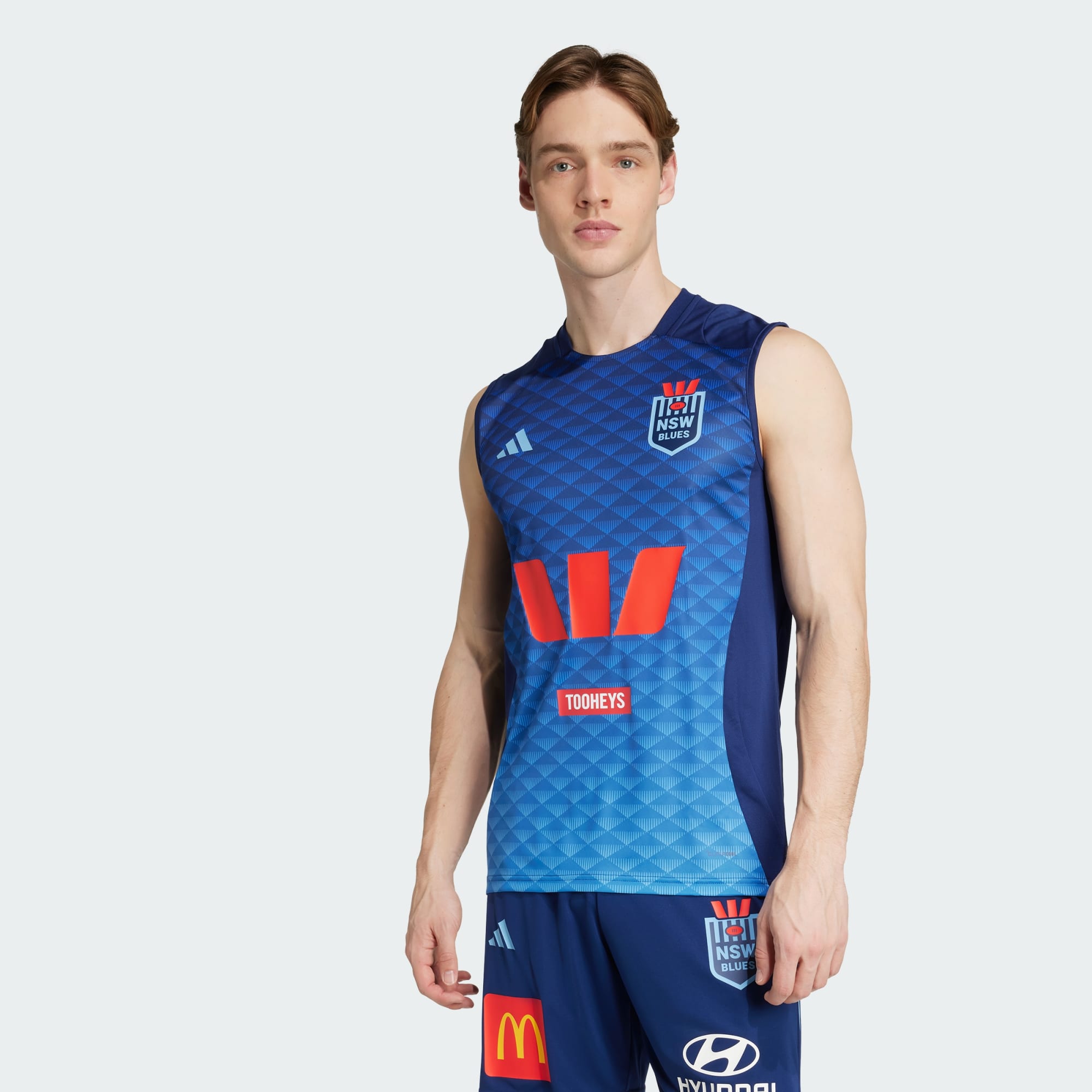 Auch an heißen Tagen kannst du beim Rugby alles geben. Dieses Singlet ist Teil der Trainingskollektion, die adidas für die Jungs von New South Wales herstellt, und garantiert dir mit seiner ärmellosen Silhouette und dem weichen Interlockmaterial ein bequemes Tragegefühl. Mit dem Vereinslogo auf der Brust zeigst du außerdem deine Fanliebe.