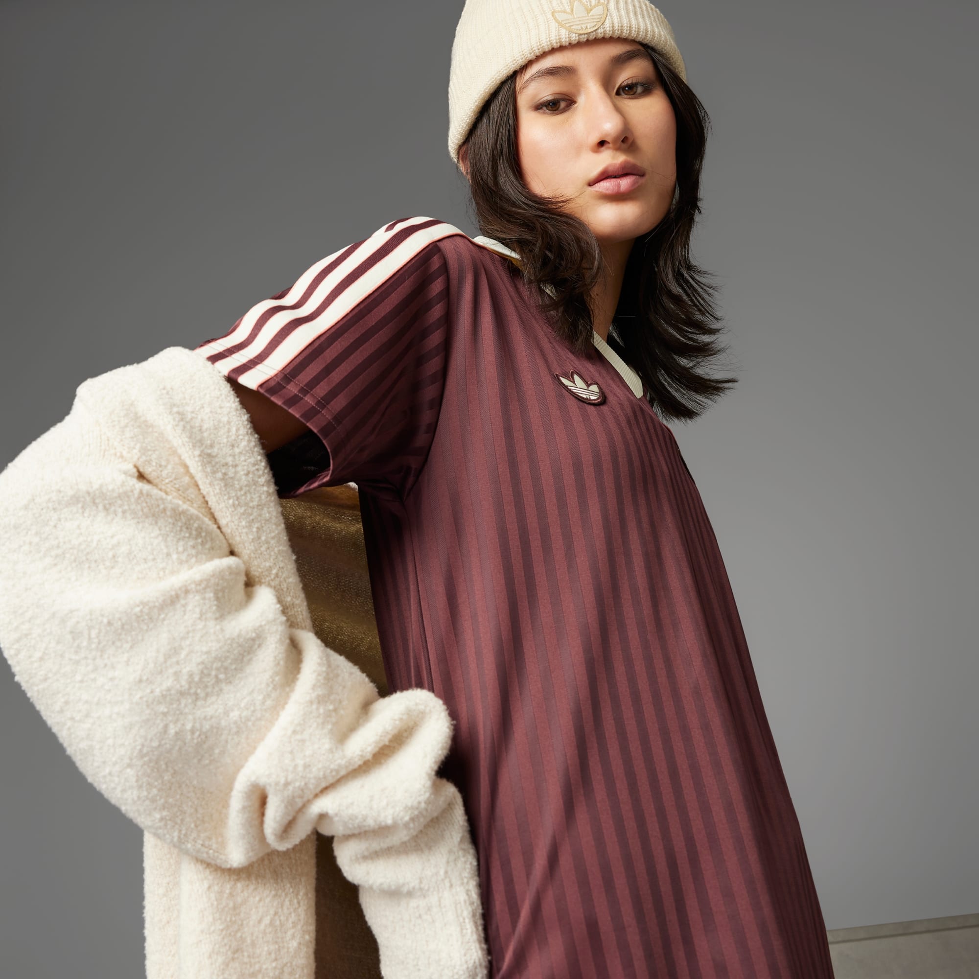 Perfekt für Fans von Olympique Lyon – dieses von Fußballtrikots inspirierte adidas Kleid lässt dich deinen Support mit angesagtem Retrovibe zeigen. Es ist von Terrace-Styles der 80er inspiriert und kommt mit einem klassischen Vereinslogo und einem Trefoil, die sich vom matt-glänzenden, gestreiften Material abheben. Dank des weichen, glatten Materials ist es superbequem und durch den cleanen Look lässt es sich easy stylen. Dieses Produkt ist mit 100 % recycelten Materialien hergestellt. Die Wiederverwendung bereits vorhandener Materialien hilft uns dabei, Müll zu reduzieren, unsere Abhängigkeit von nicht erneuerbaren Ressourcen einzuschränken und den CO2-Fußabdruck unserer Produkte zu verringern.