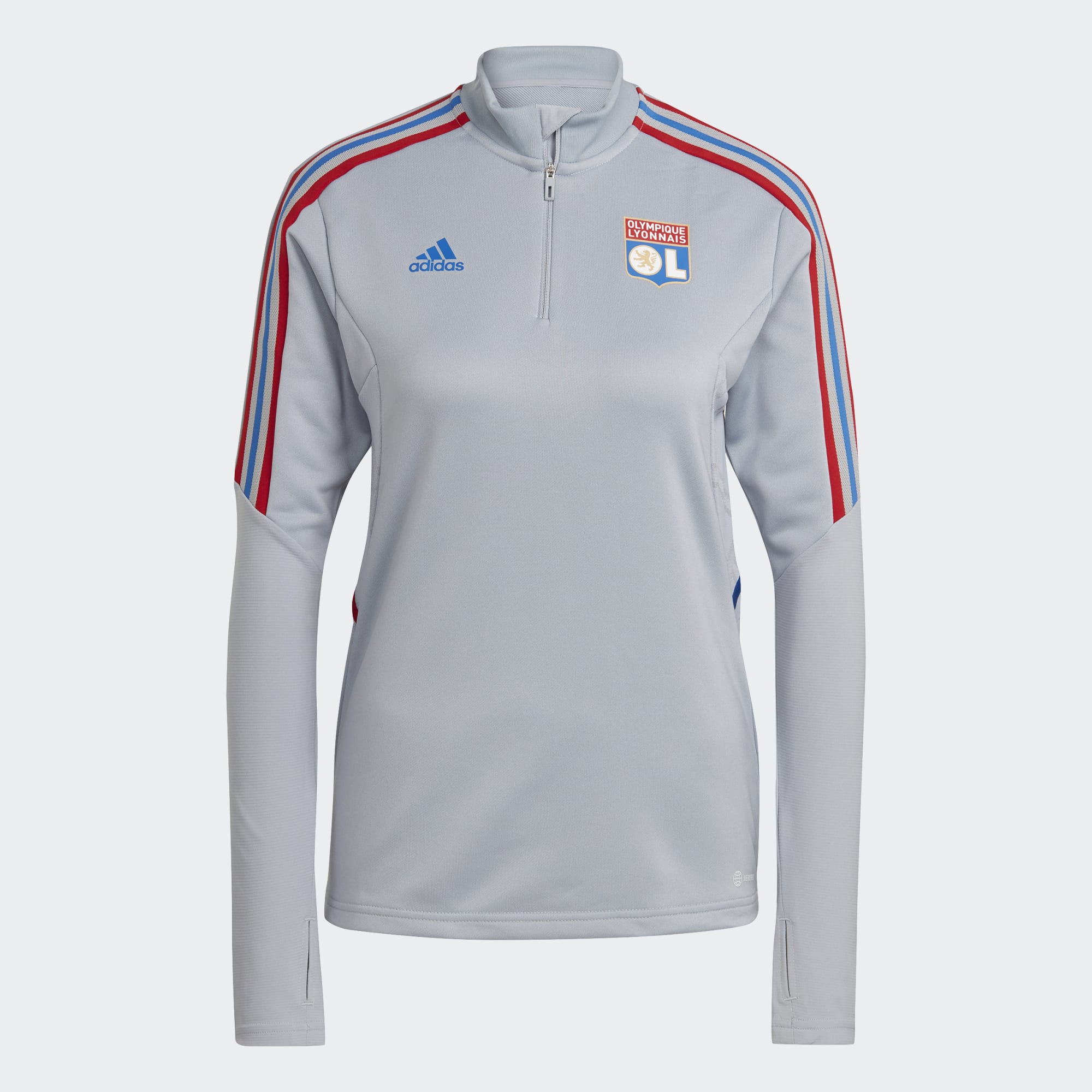 Mit diesem adidas Fußballoberteil genießt du jede Minute im Training hohen Tragekomfort. Die dezenten rot-blauen Details spielen auf die Heimausrüstung von Olympique Lyon an und das Vereinslogo auf der Brust zeigt deinen Support für den Club. Die feuchtigkeitsabsorbierende AEROREADY Technologie hält dich angenehm trocken, während die Daumenöffnungen an den Bündchen an kalten Tagen für ein Plus an Wärme sorgen. Das Produkt ist Teil unseres Engagements gegen Plastikmüll und besteht zu 100 % aus recycelten Materialien.