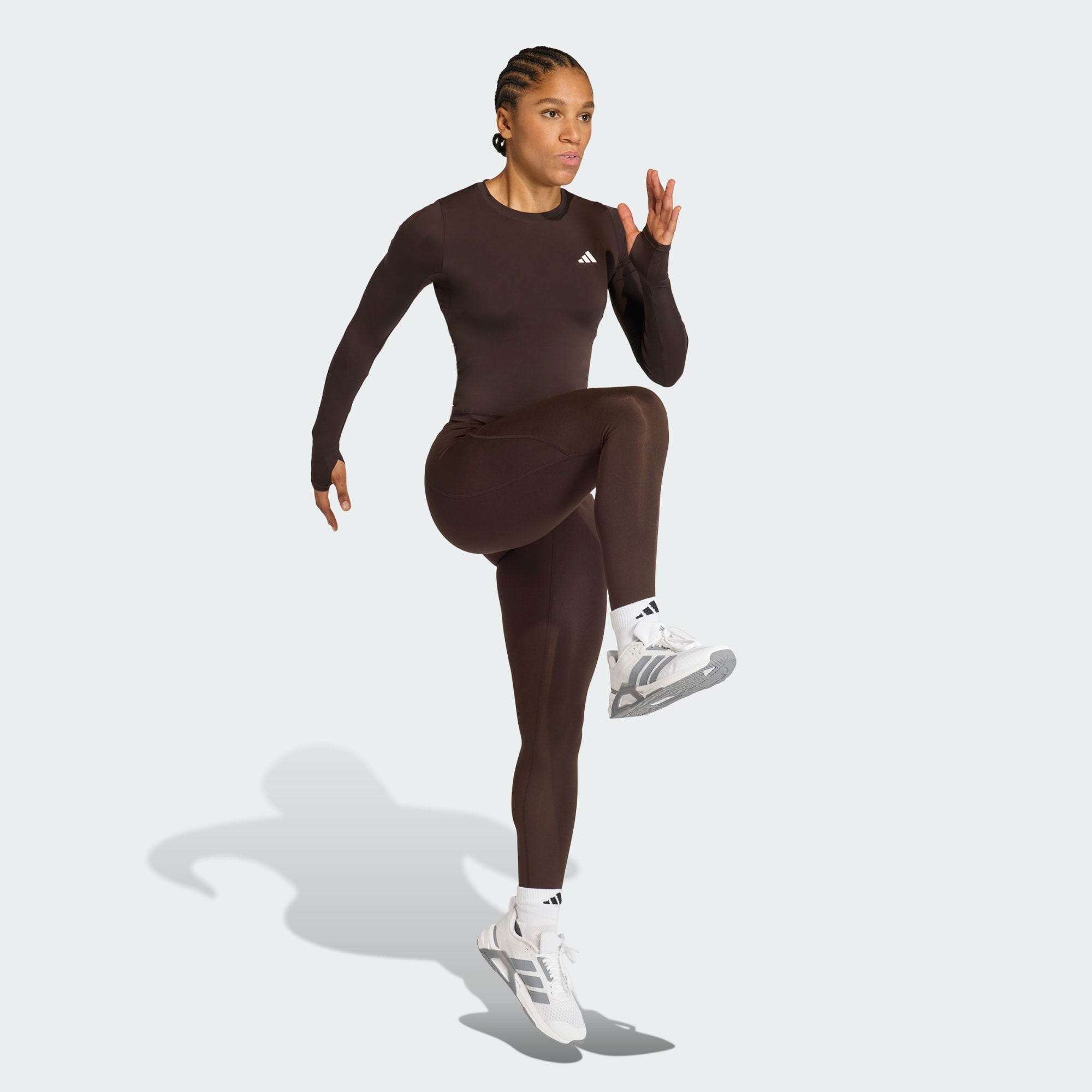 Mit dem PrimeLift Essentials Workout Contour Longsleeve kannst du dich voll und ganz auf dein Training konzentrieren. Dieses langärmelige Oberteil wurde für alle entwickelt, die das Fitnessstudio als ihren heiligen Rückzugsort betrachten. Die sleeke, eng anliegend geschnittene Passform schmiegt sich an deinen Körper und erzeugt eine schmeichelhafte Silhouette, die jede Bewegung mitmacht. Der Style ist aus weichem Single Jersey gefertigt und hat Daumenöffnungen, damit die Ärmel auch bei intensiven Trainingseinheiten nicht verrutschen. Dank der Climacool Technologie leiten die Materialien den Schweiß schnell ab und ermöglichen ein effizientes Feuchtigkeitsmanagement. Dadurch kannst du dich voll und ganz auf deine Leistung konzentrieren. Ob du dieses adidas Oberteil für einen stylishen Look oder aus praktischen Gründen trägst – es passt sich deinen Bedürfnissen an und ermöglicht es dir, deinen persönlichen Modegeschmack auszudrücken und gleichzeitig deine Fitnessziele zu erreichen. Entwickelt für hybrides Training und vielseitige Einsatzmöglichkeiten.